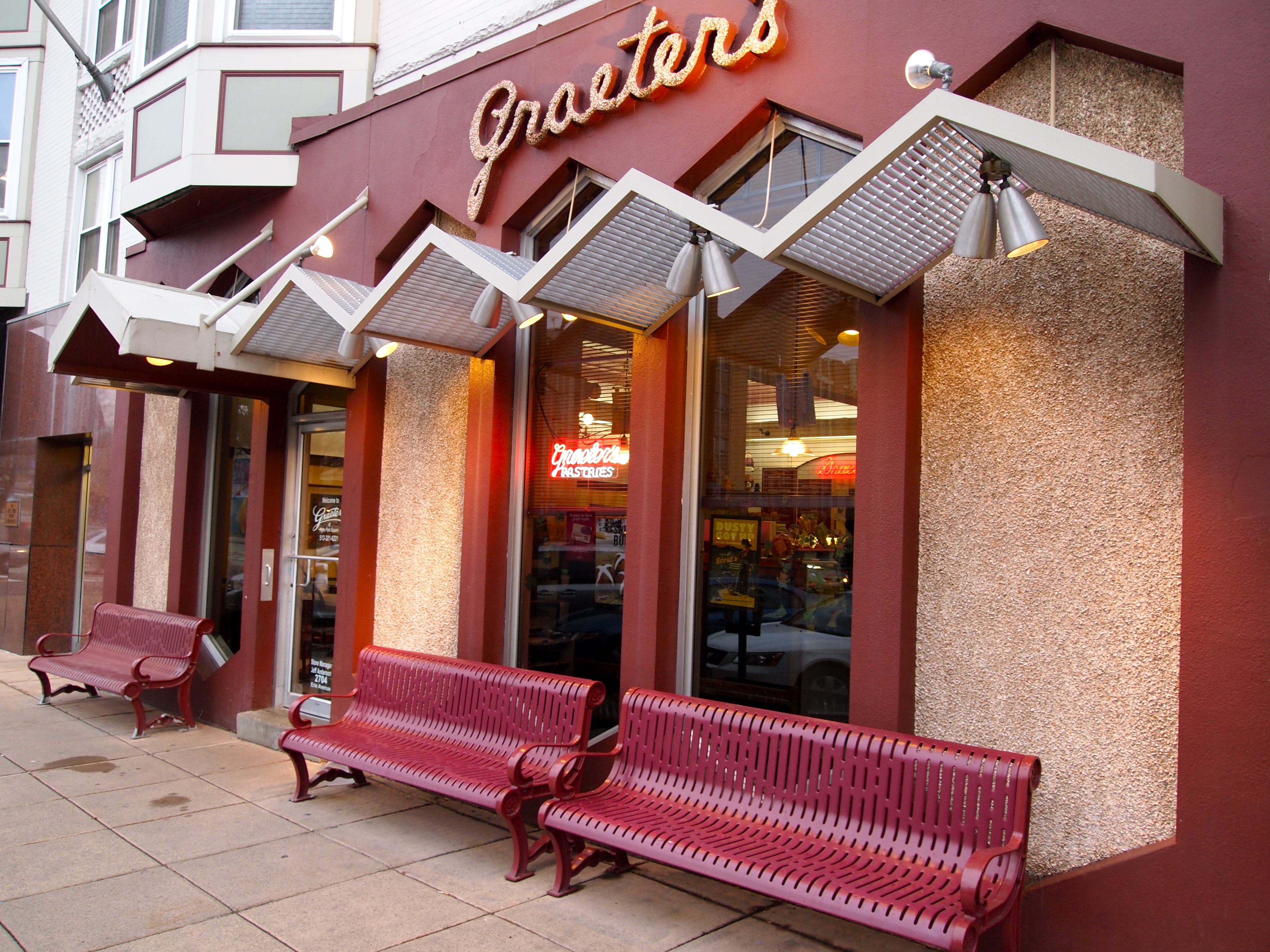 Now we’re back in Hyde Park at the “Awakenings Coffee and Tea Co.” and “Graeters Ice Cream shop.