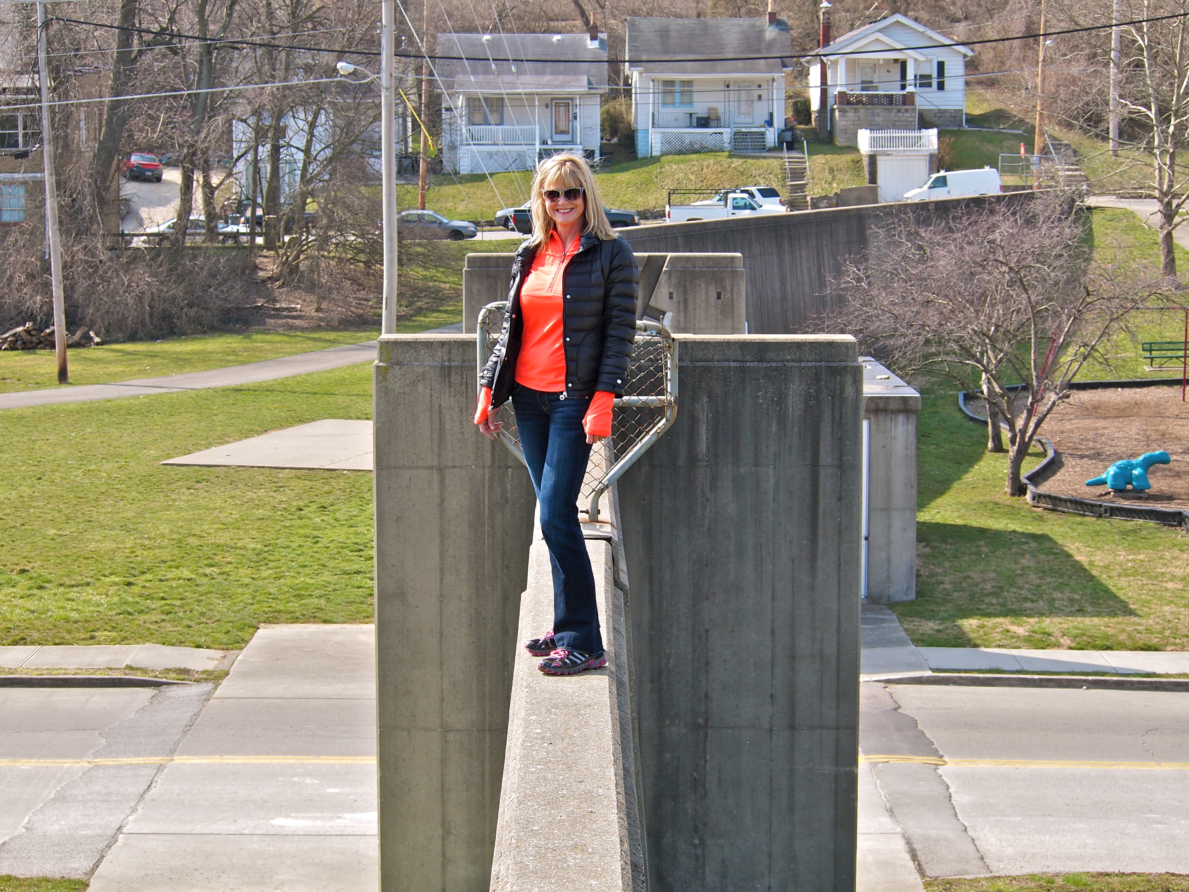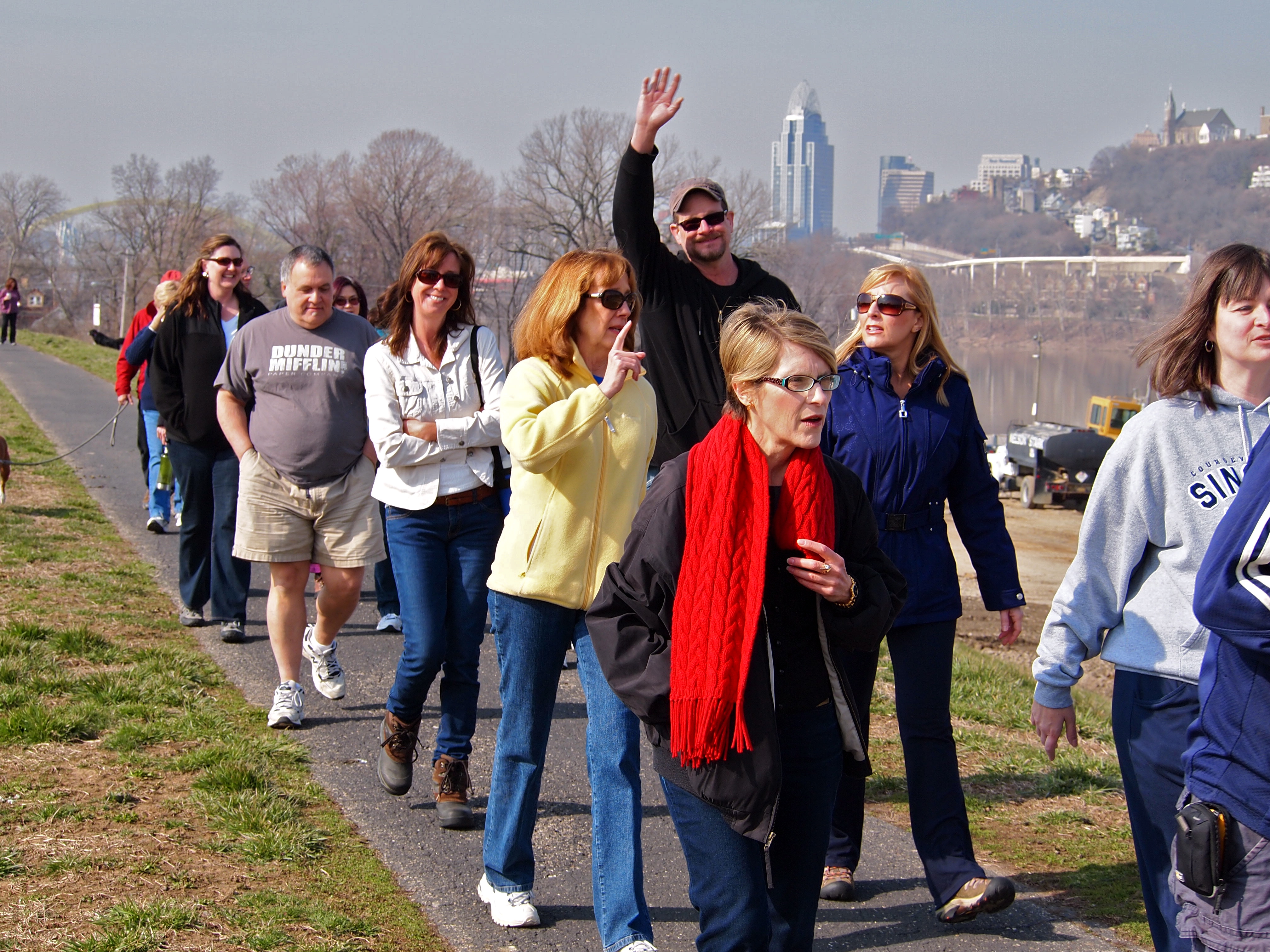 You can see Downtown Cincinnati behind the husband sarcastically waving!