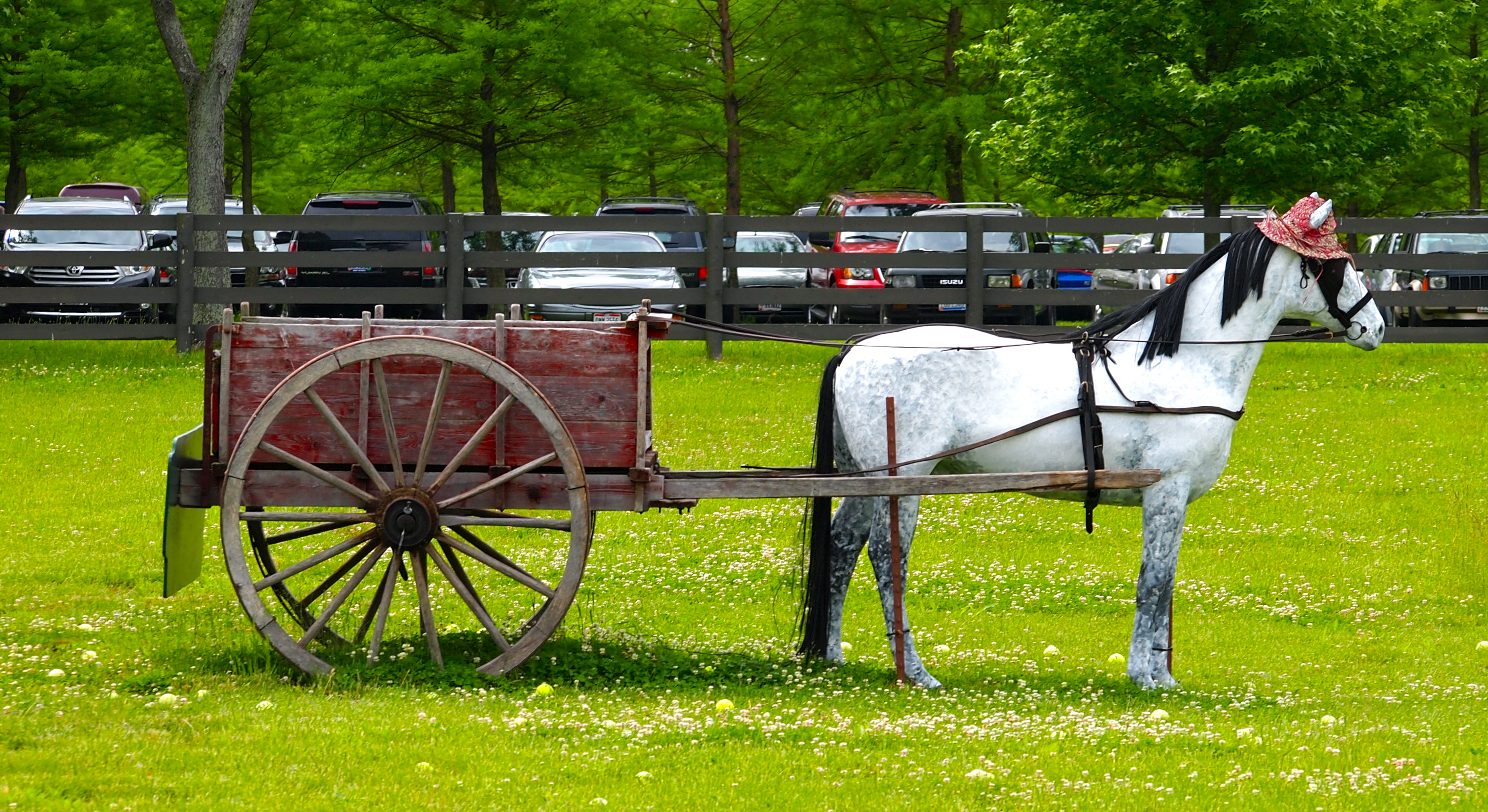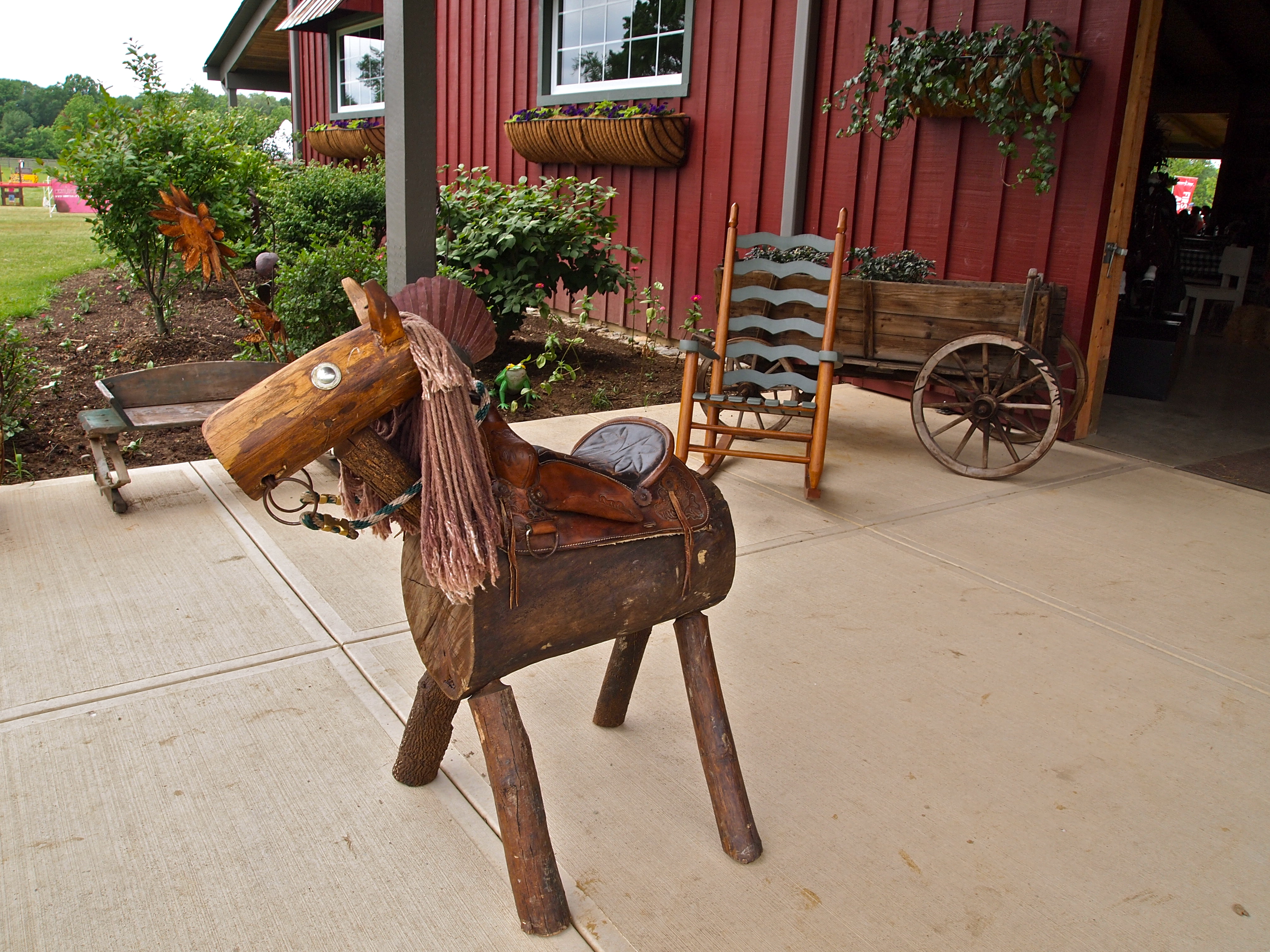 You can try your luck at aiming tennis balls at this wagon and fake horse with the Giant Slingshots shown in the following photo…