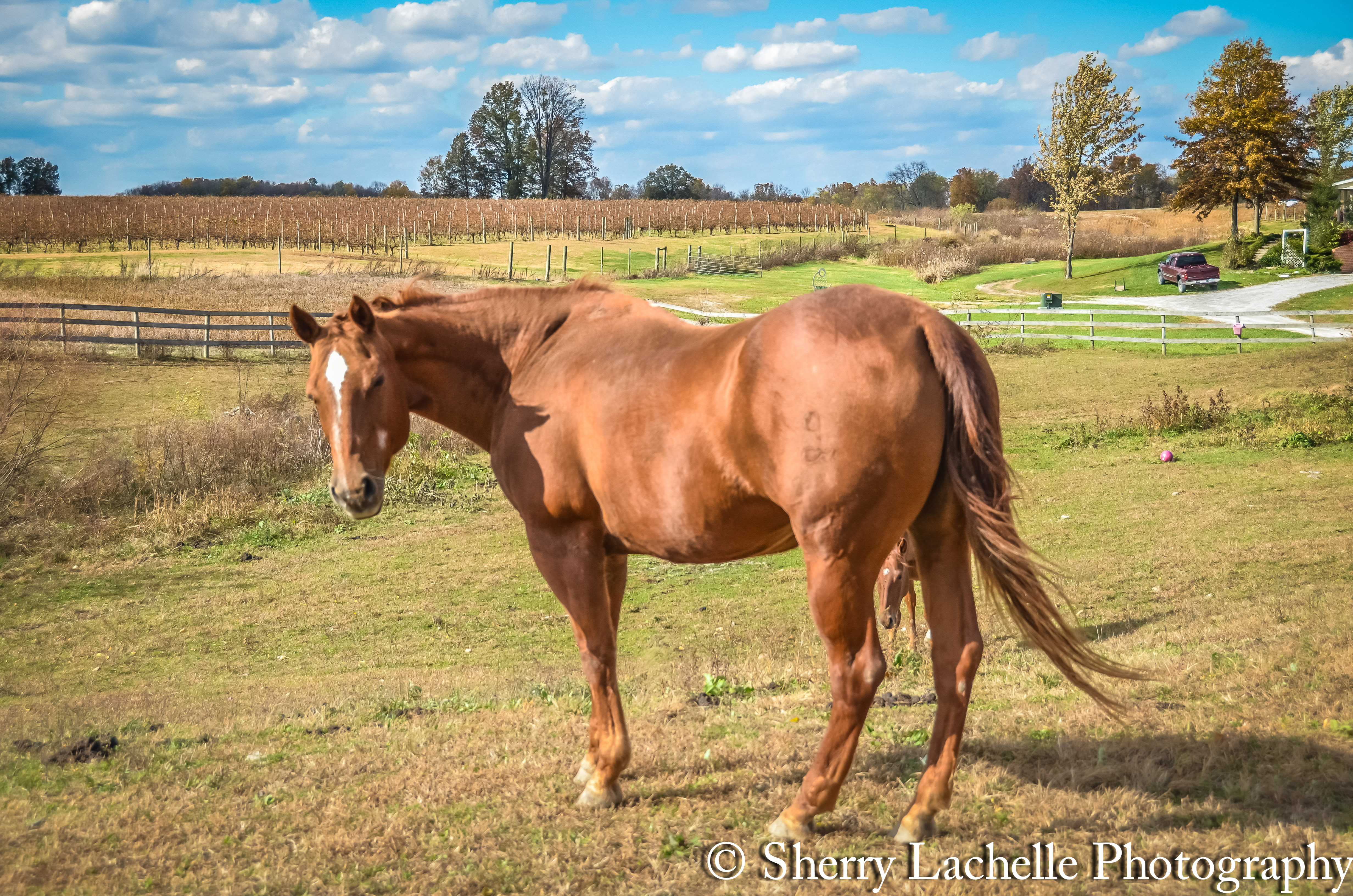 They have a few horses. Every time I would try to take a photo of one, it would turn its head away, so I had to move to get their attention and quickly snap a photo! Eventually, they came up to me for some affection.