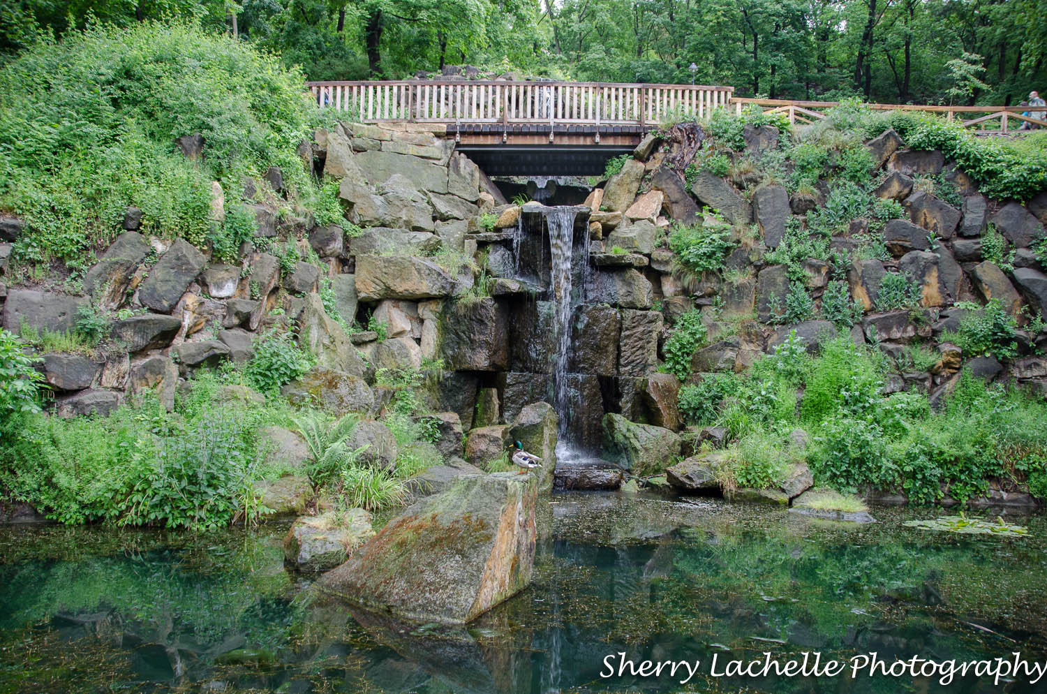 We were delighted when we spotted a waterfall and small pond.  If you look closely, you’ll notice a duck sitting on the large rock…