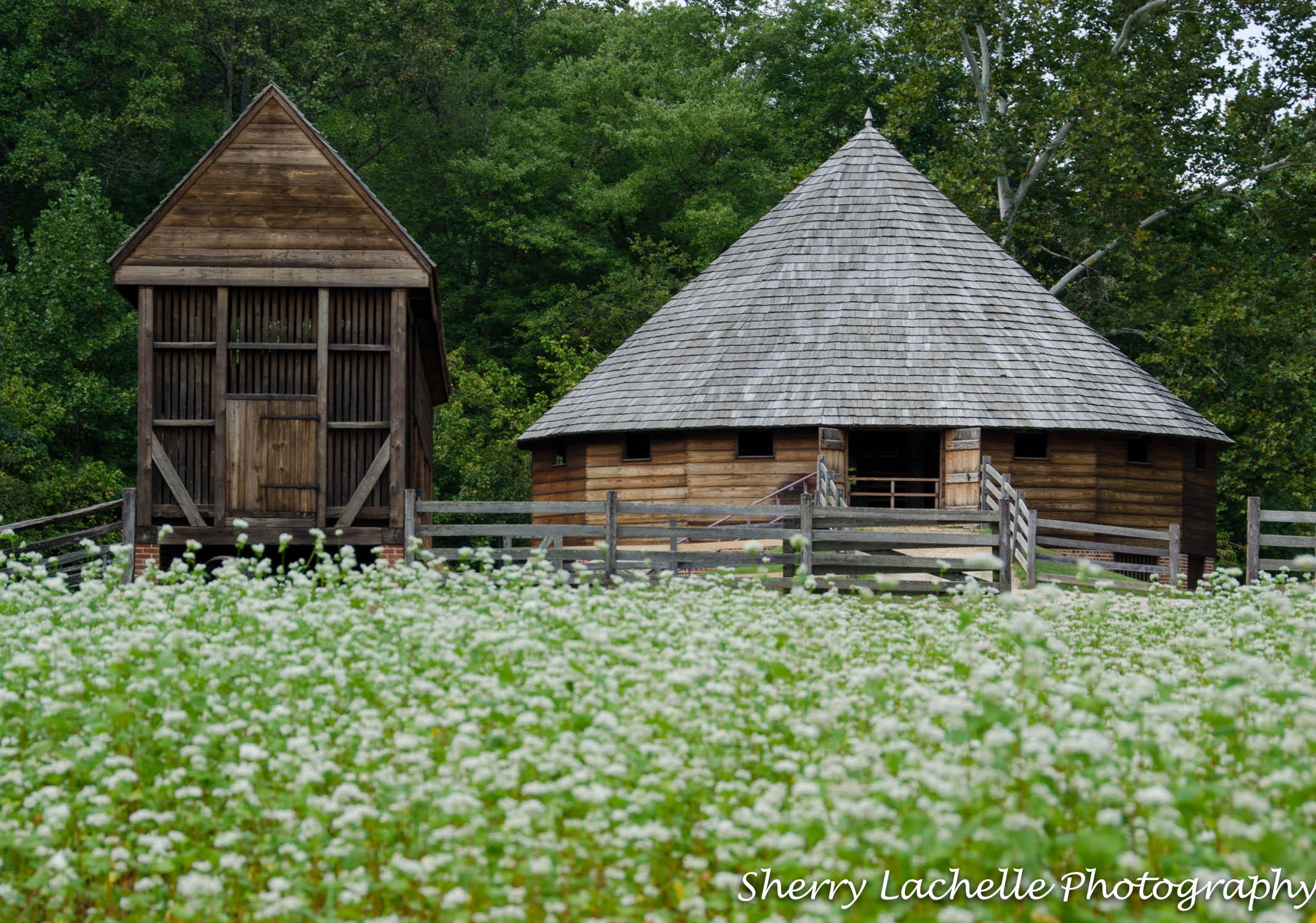 George Washington designed a 16-sided barn used for grain processing and storage. He used a somewhat common technique to separate grain from stalk by having his horses walk in circles treading the grain, but also conceived of the innovation of leaving spaces between the floorboards so that the heads of grain, once separated from the straw, would fall through to a granary below.