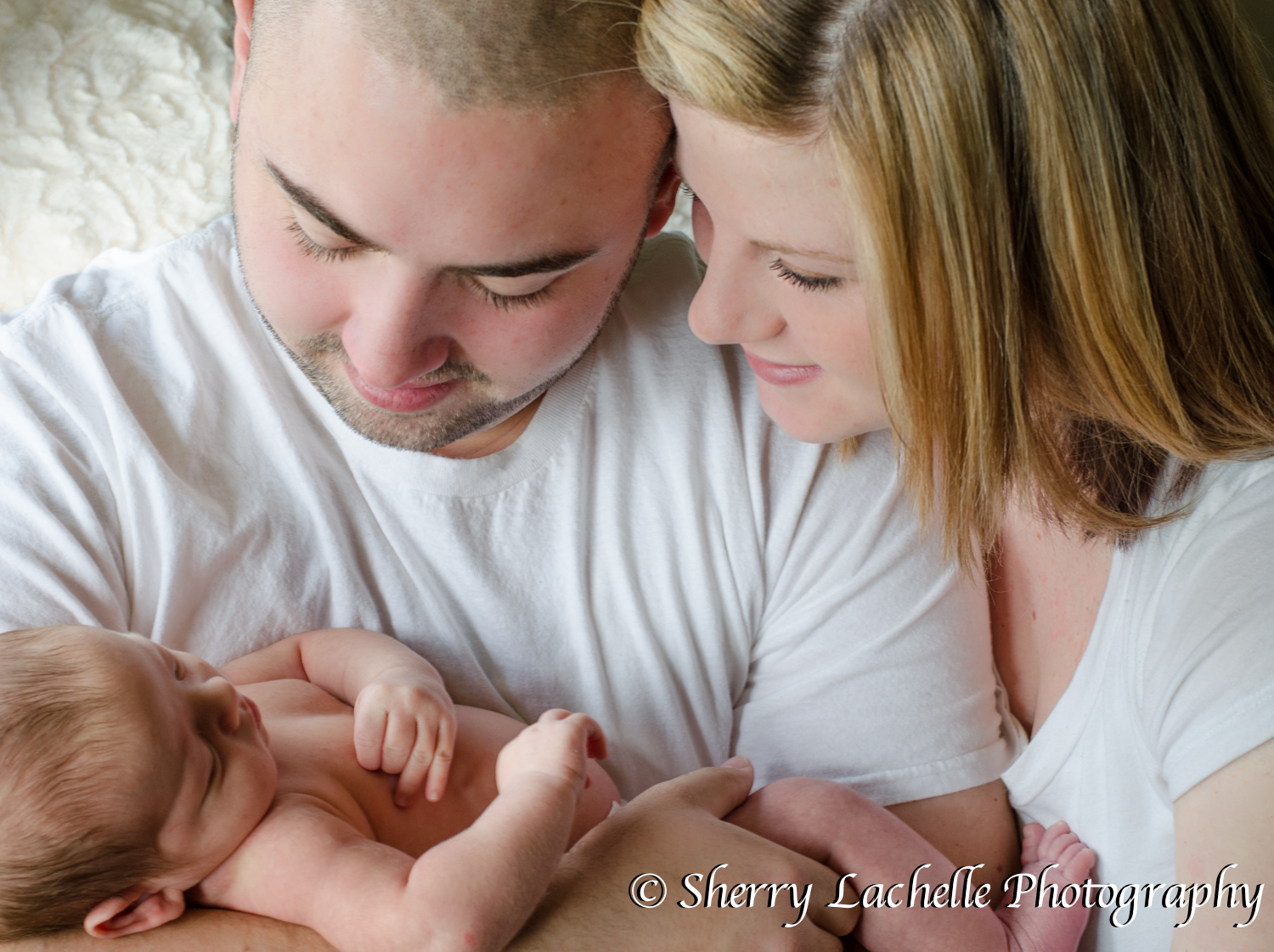 My newborn baby photography session on Saturday was extraordinary, sweet, draining, and funny!  I drove 45 minutes to the client’s home and luckily they had a huge window in the living room that provided spectacular natural light.  While the mother was finishing feeding the baby, I took some photos of their very active and darling three-year old daughter.  But first, I’ll show you some of my favorites of the baby.  I initially told my friend (the Grandmother) that we should set the appointment up for the photos when he was two to three weeks old.  This being my first newborn photo shoot, I didn’t realize until later that the pros recommend taking the photos when the newborn is 10 to 14 days old.  Lockland is 3 1/2 weeks old, so he wasn’t quite as sleepy and flexible, but he did great!  After checking out poses on Pinterest to come up with some ideas, I brought a large wicker basket with me and took this shot…