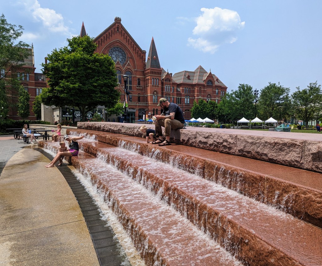 So far this week I’ve been biking from my place in Ludlow, Kentucky across the Roebling Bridge to Washington Park in Over the Rhine, Cincinnati, then across the purple people bridge into Newport, Kentucky and back home.