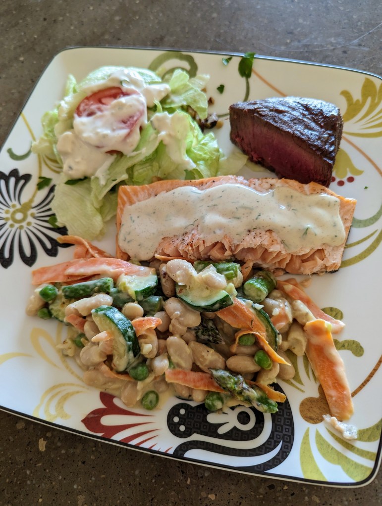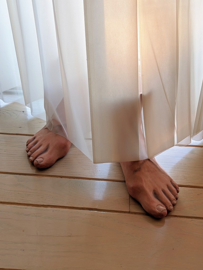 Wednesday, I went to a new friend’s house for dinner. We met through my hiking club. The food and company were excellent! I love her deck. She’s an artist and her ceramic feet are a great conversation piece.