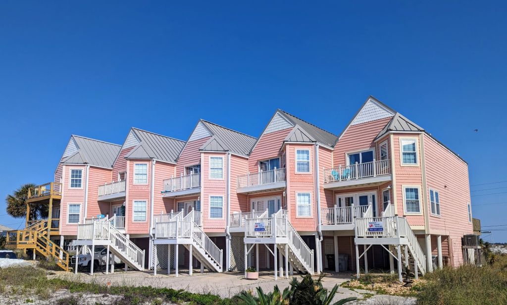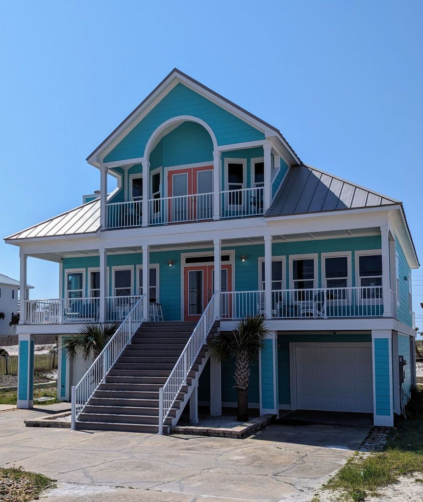 Today was my last day here, so I did one of my favorite things, cycling.  The bike path along Navarre Beach is very nice. There are lots of cool and colorful homes along the way. I love architecture! I cycled about 7 mi round trip, on a beach cruiser, which doesn’t have any gears and you push backwards with your foot to stop.  I asked a lady to take my photo.