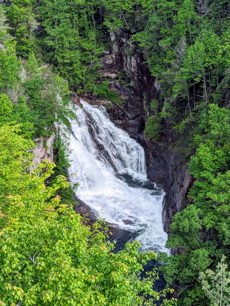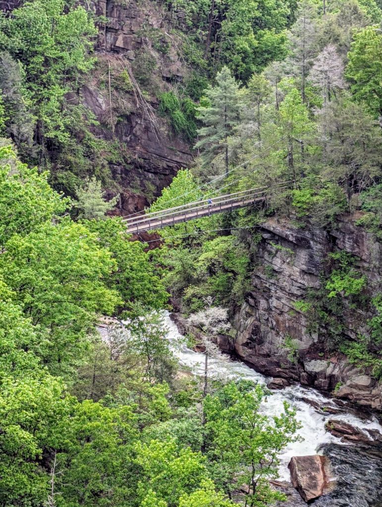 This morning I drove to Tallulah Gorge State Park and hiked almost 2 mi on the North and South rim gorge trail. There are about 2,000 steps 🙀 and half of those go up. Beautiful views though!