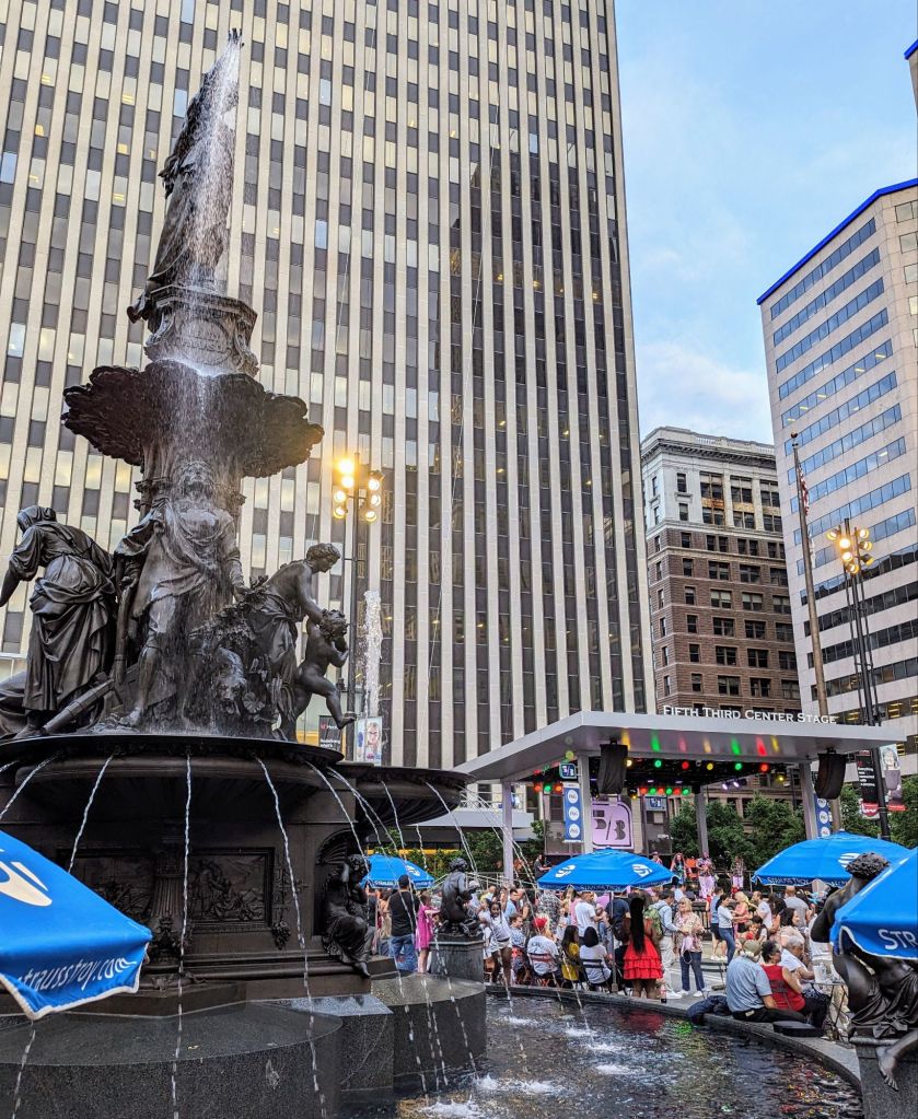 A friend and I went to happy hour and then attended an event at Fountain Square called Salsa on the Square. They give a class, so we participated, it was fun.