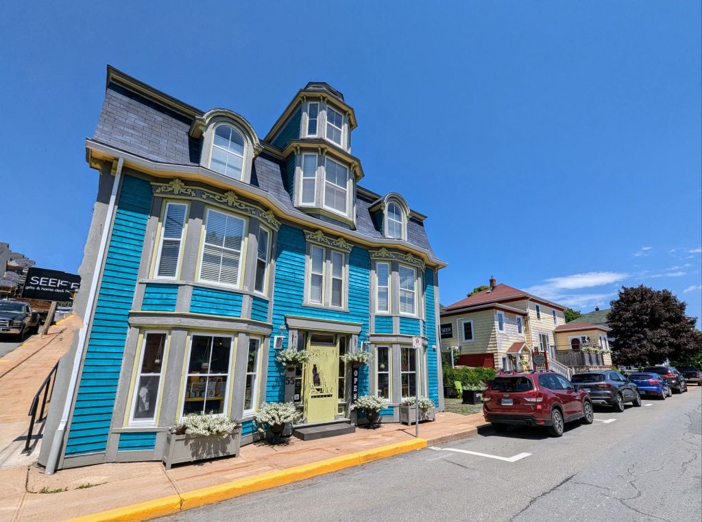 Then I went exploring, walking along the main road, the harbor area, and also up on Lincoln Street. I loved the colorful houses, the architecture, and all of the shops selling unique gifts, art, and clothing. It was cool seeing the massive boat, whose image is on the $0.10 Canadian coin.