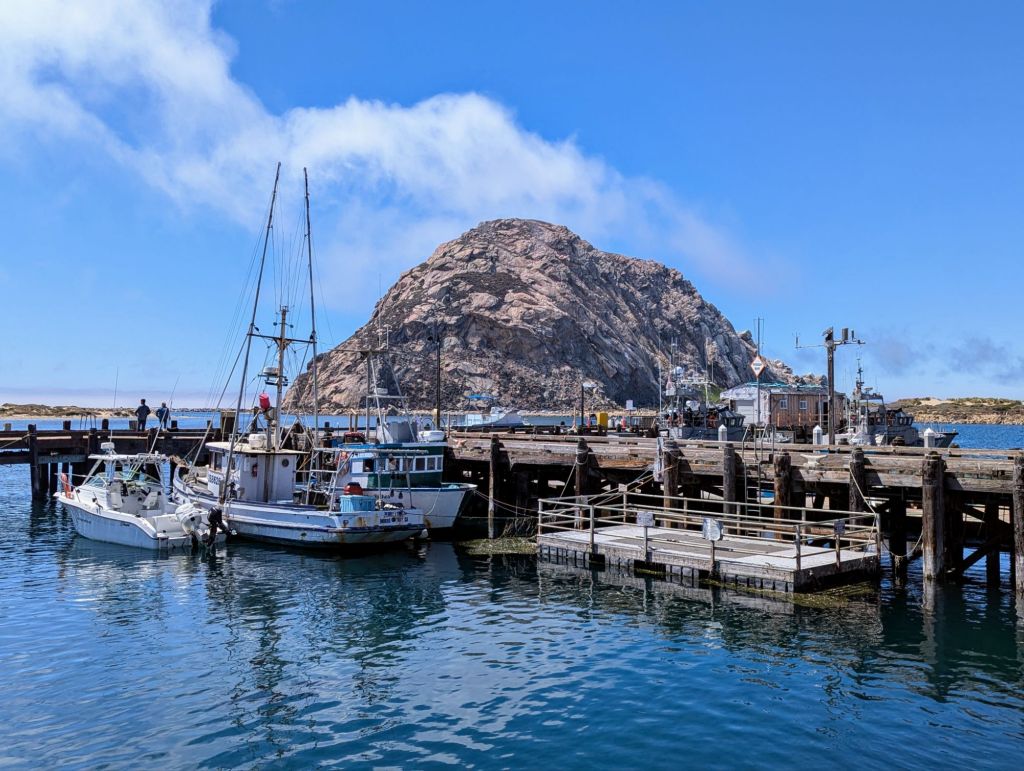 Then I drove a half an hour to the coast, Morro Bay, and had lunch with a fantastic view of Morro Rock! It was 60° there, while back in Paso Robles it reached a high of almost 100°.