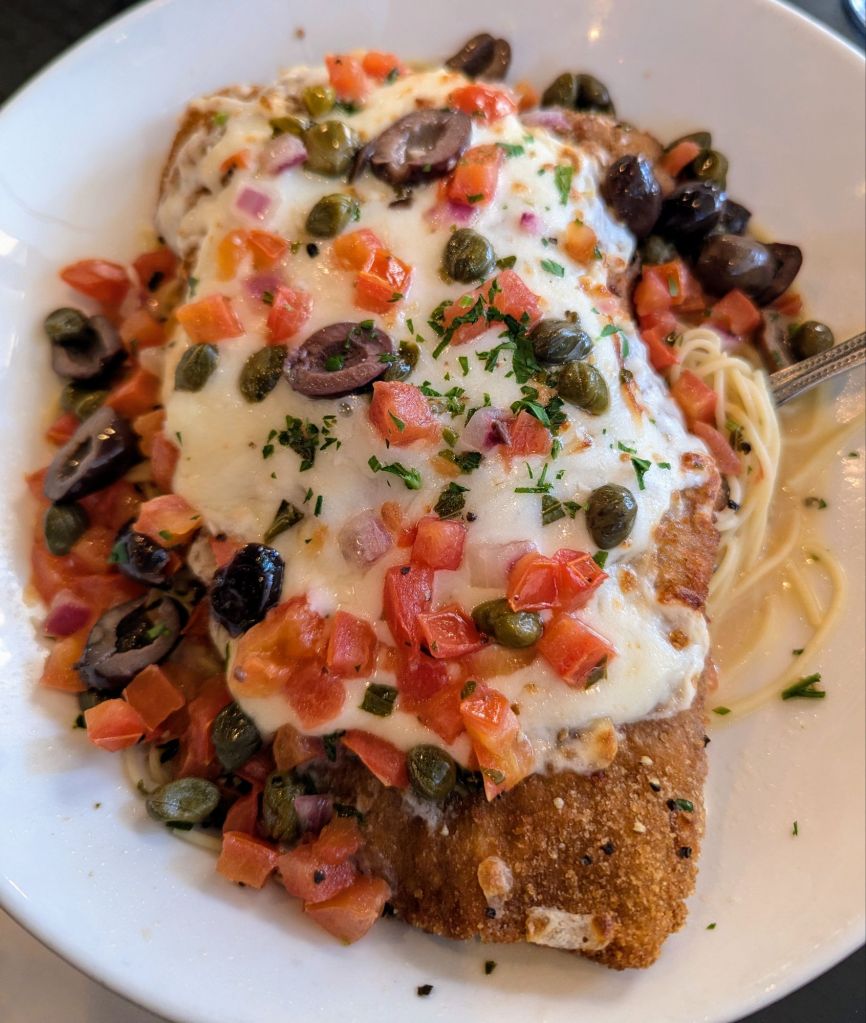 Then I drove to Old Colorado City and had lunch at a delicious Italian restaurant. I had veal parmesan, which I haven’t had since I was in the military living in Germany. At that time I learned that the baby cows were inhumanely raised so I’ve never eaten it since…until now.