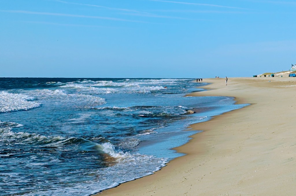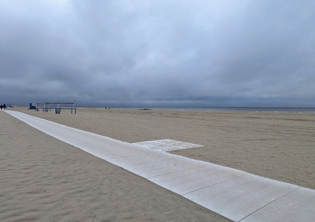 Originally, I was going to stop in the town of Cape May to explore, but it was raining, so I checked into my lodging in the Wildwood area of Cape May, a block from the beach. The rain stopped briefly, so I went to the beach and snapped a pic…