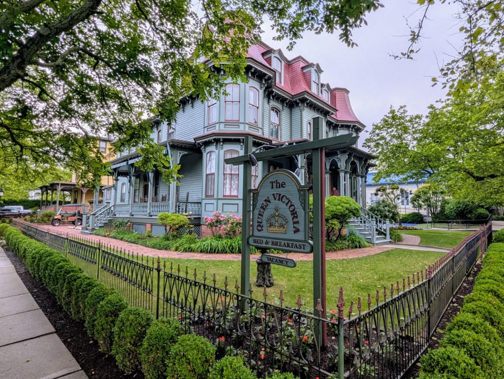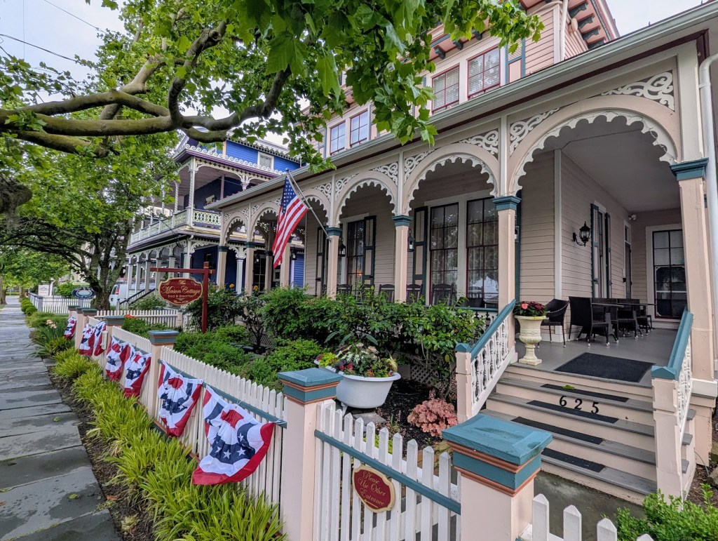 When I checked the weather forecast this morning, it was supposed to begin raining by 10:00am, so I left my lodging by 6:30am and went to explore the quaint historic town of Cape May. My first stop was the area with Victorian homes. I love architecture and these homes are so cool!