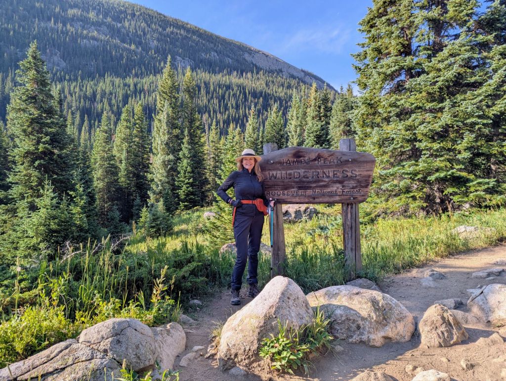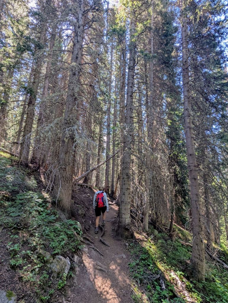 On Saturday, I went hiking with a group in the James peak wilderness area. The hike began at an elevation over 9,000 ft., and was almost 7 miles with an elevation gain of 1600 ft. The leader hiked very fast and I was breathless for much of the hike. It was a great workout! Since I arrived early, I stopped in Nederland and took a photo at the Barker Meadow Reservoir.
