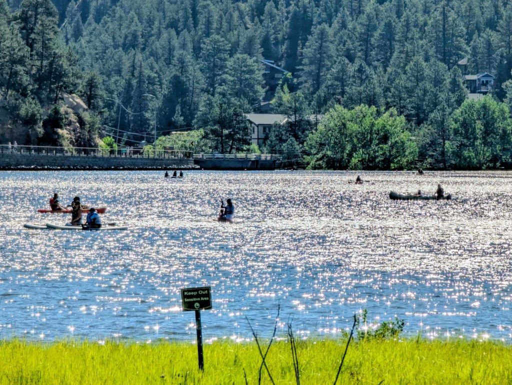 On Sunday I joined a group at Evergreen Lake. We walked around the lake and then hung out and talked for a little while. There were kayakers and paddle boarders enjoying the lake. I love how it sparkled in the sunlight.