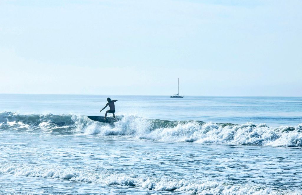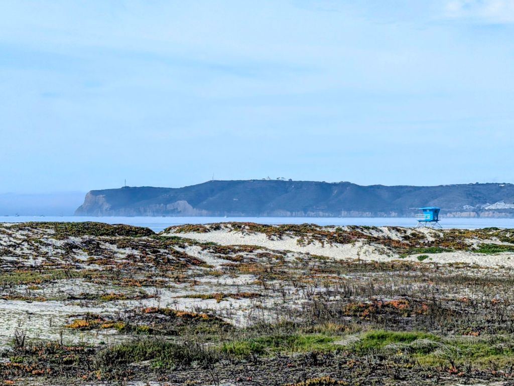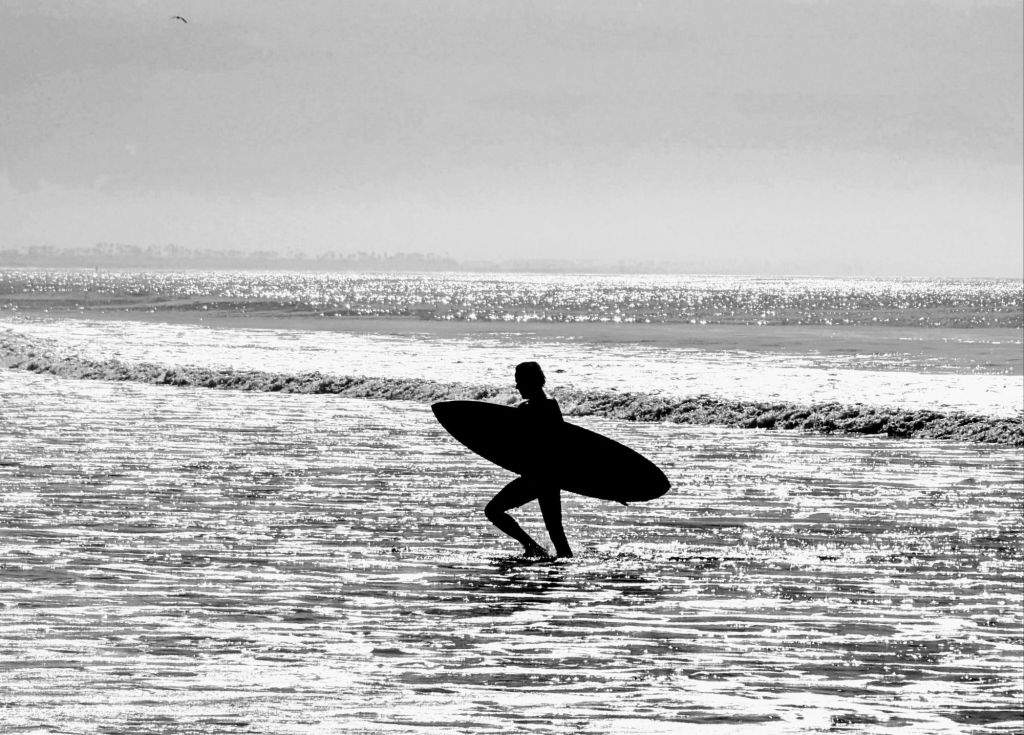 Then I drove across the long bridge to Coronado Beach. There was still some fog, but it began to clear as I walked on the beach. There was a lone surfer.
