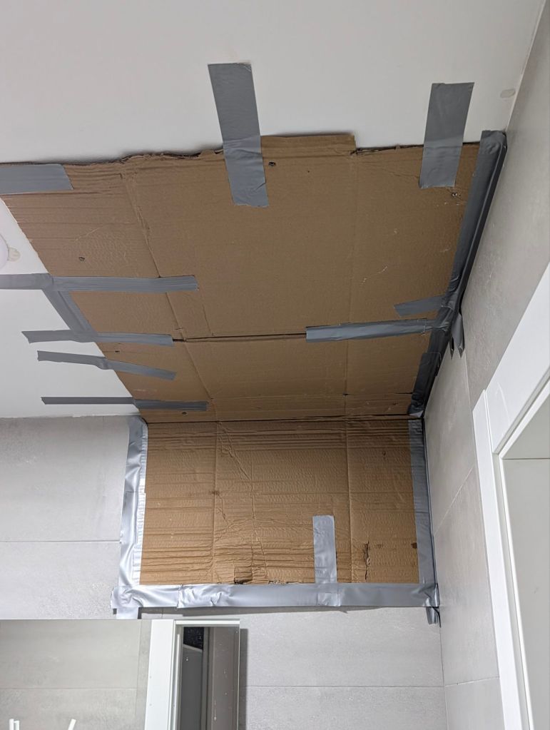 Since I arrived on Monday, I’ve been dealing with the Airbnb host about a leak in the bathroom ceiling. He had workmen come in to cut a piece of drywall out and supposedly stop the leak. The cardboard patch is an eyesore. The host didn’t offer any compensation for all of the inconvenience. But then, it started leaking again last night, and I have to keep a bucket on my sink to catch the drops. He’s going to have me move tomorrow to another one of his units, a couple of doors down.