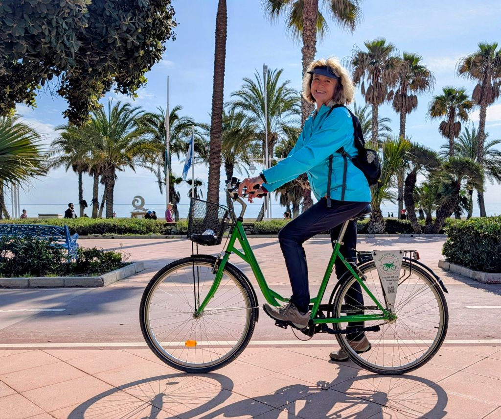 Yesterday, I rented a bike and rode 13 miles on a paved bike path along the coast in Malaga. It was a beautiful ride, but at times very crowded and confusing. I should have done it on a weekday. It was nice to do something active without having to walk π