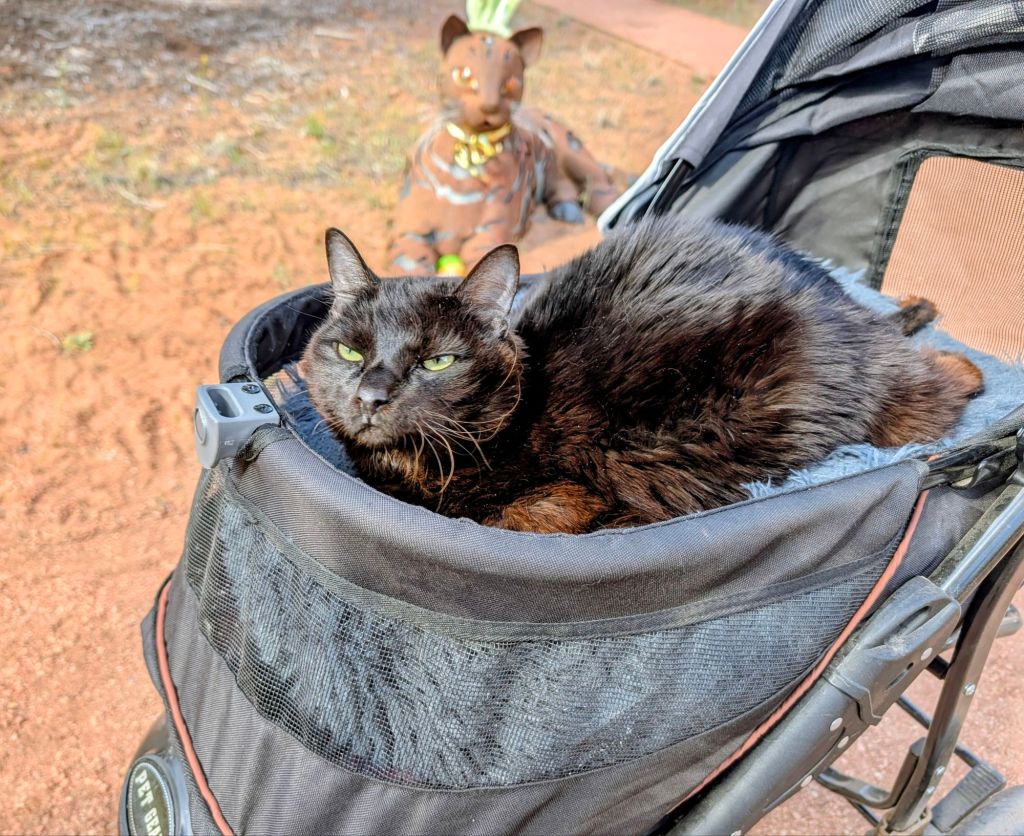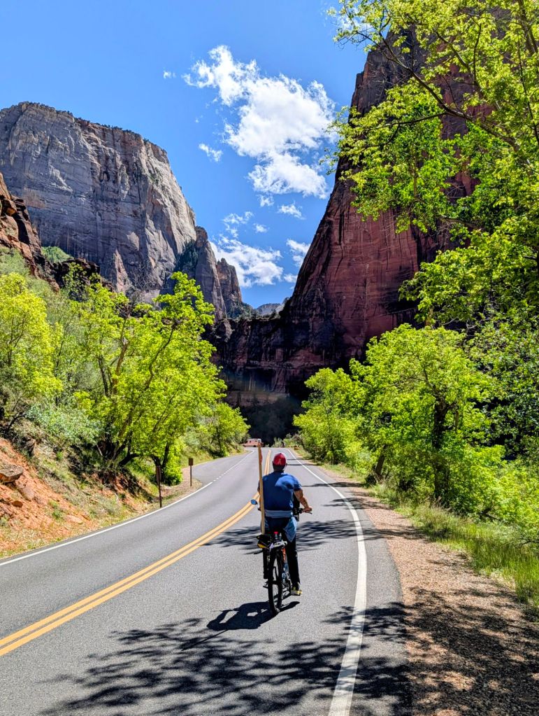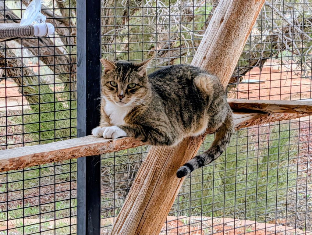 Yesterday was fun! I cycled 20 miles on Zion Canyon Scenic Road. Since there are mainly shuttle buses beginning April 1st, it was peaceful without traffic. Amazingly beautiful! I also volunteered at Best Friends Animal Sanctuary in the medical cat house. There were 50 cats in this particular building that had a variety of issues. I played and snuggled with them and took some of them for a carriage ride, and cleaned one of the rooms. The one that’s pictured is paralyzed. The sanctuary is huge…33,000 acres. I plan on volunteering a few more times. Maybe with the dogs also. They have horses, parrots, rabbits, etc.