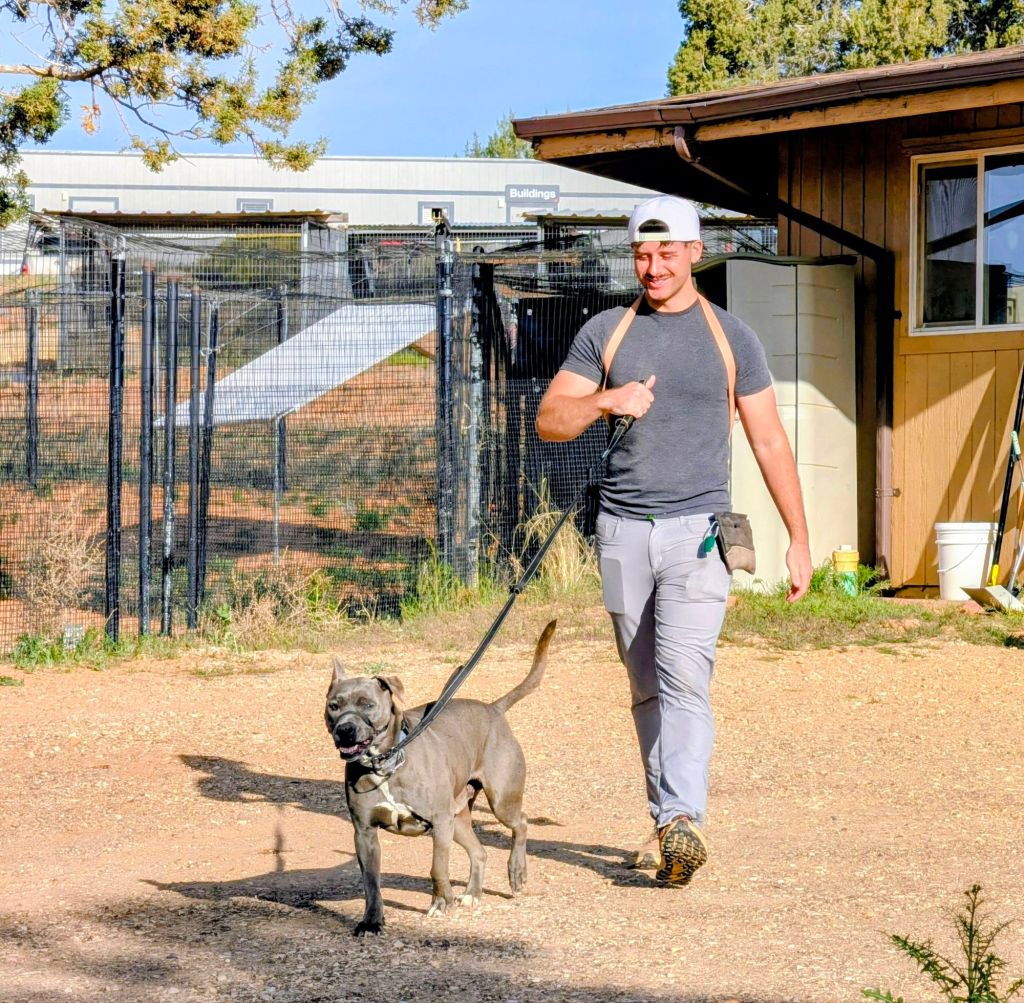 Sunday, I volunteered at the animal sanctuary again. This time it was with dogs. My first task was to take Hendrix on a 30-minute walk. He is one of six dogs in this particular building that have behavioral problems. That is his handler bringing him to me. He’s the only one that is volunteer friendly, and it went fine.