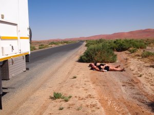 This first breakdown was the longest…over an hour…so the Danish girls decided to get some sun…