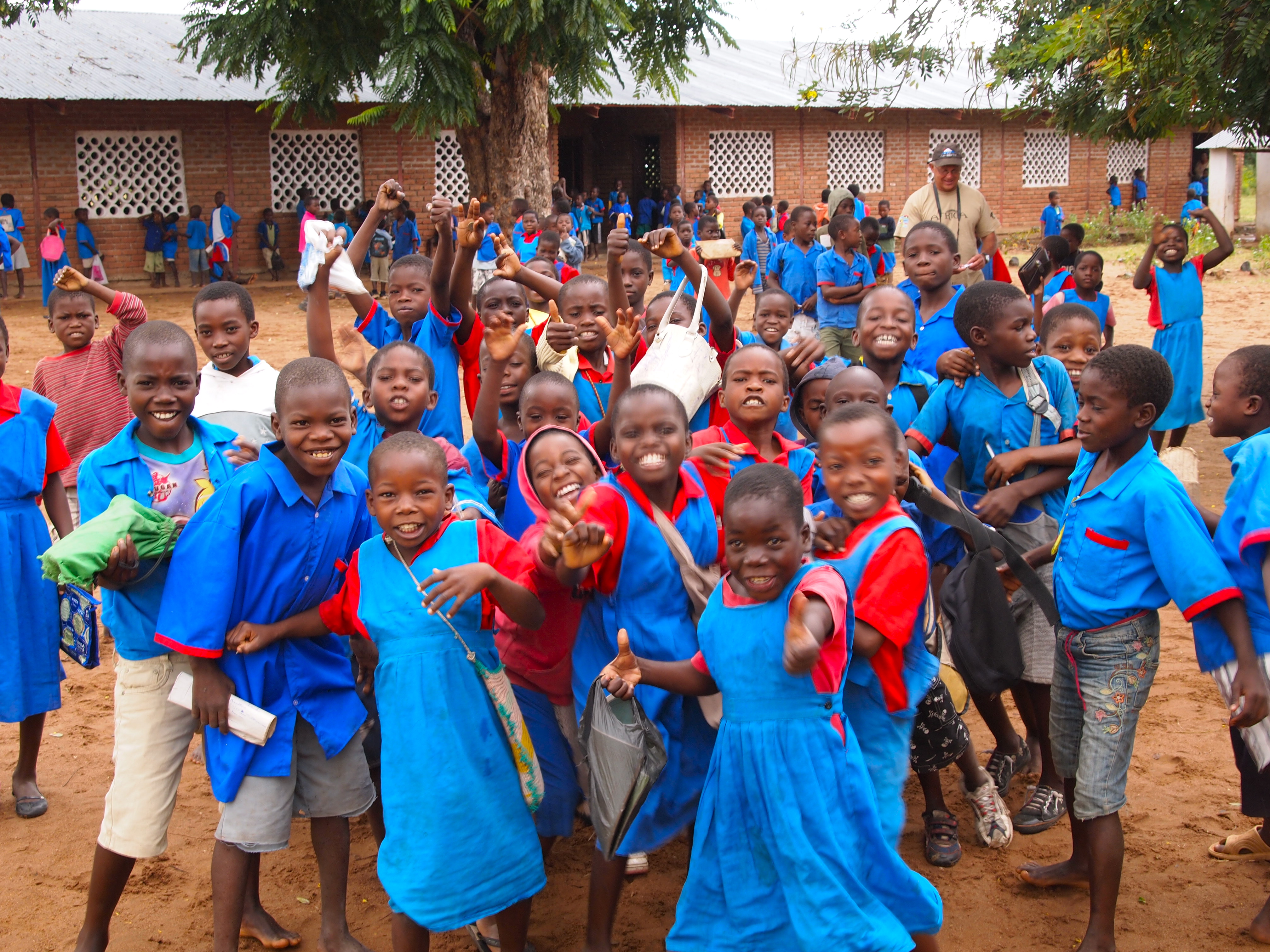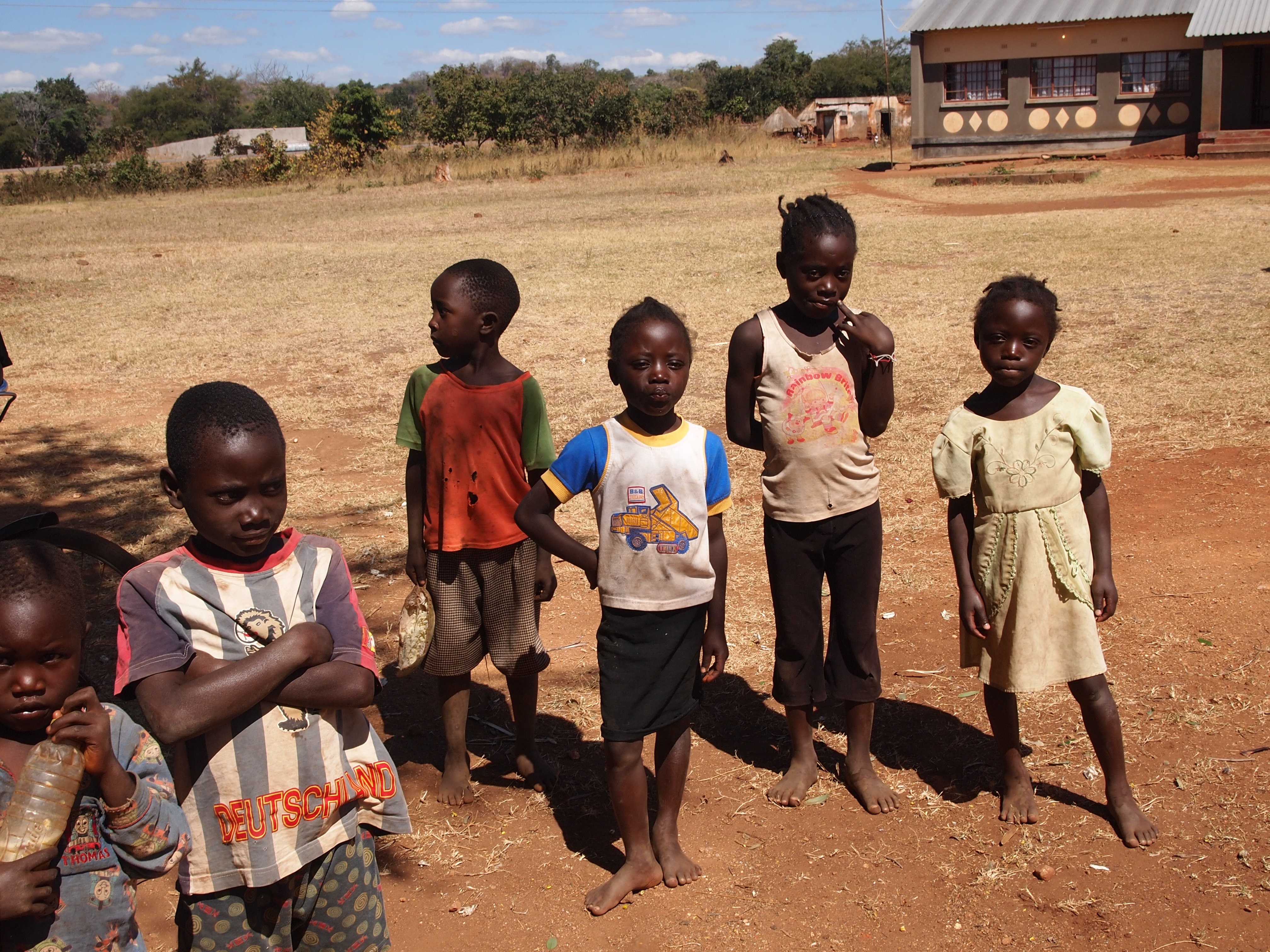 With a 12 hour drive (including breaks) looming over us, our G Adventures African Overland Truck group left at 6am from Victoria Falls in Zambia. We stopped for lunch at an abandoned school yard. There were some children playing and they came over to check us out.