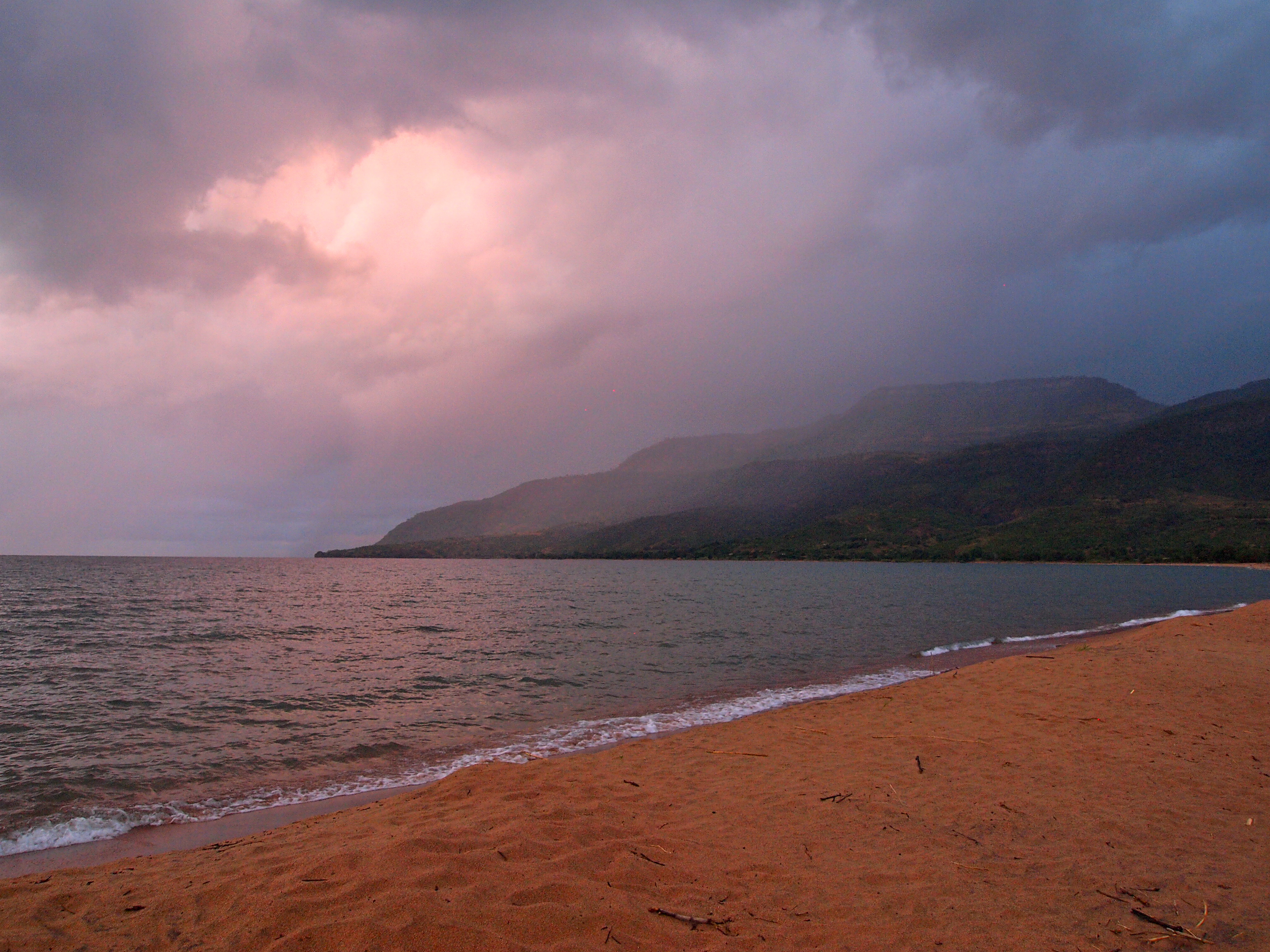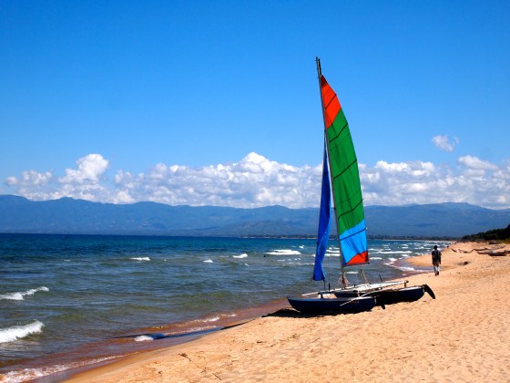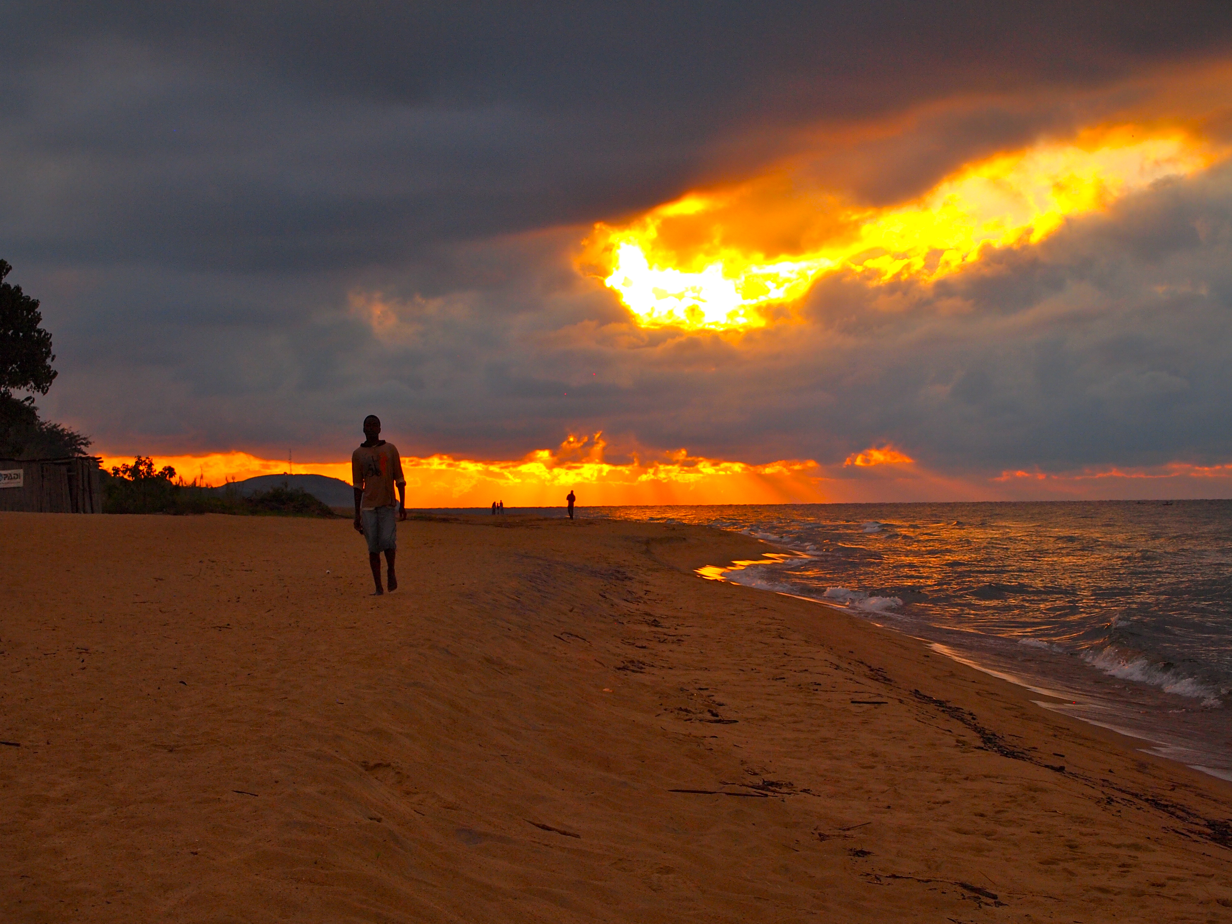 The landscape was becoming more tropical the farther East we went. We stopped in the capital of Malawi, Lilongwe (population 1M) for snacks, ATM, etc. I cut my toe on a wire that was hidden in the grass. We finally arrived at Kande Beach on Lake Malawi around 5:30pm. We set up our tents, took photographs (wait until you see the Lake), had dinner and were in bed by 9pm.