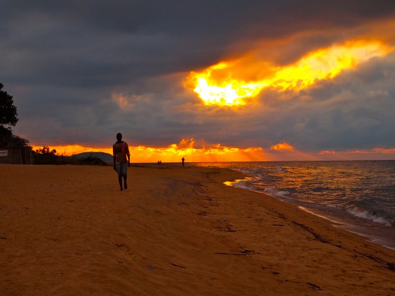 Having driven through Malawi, the day before, which you can read about here, my G Adventures Overland Truck group was excited to have arrived to our first campsite as night fell at Lake Malawi…Kande Beach. We were staying here for two nights. The next morning, I was up before sunrise, so I walked the short distance to the lake and was pleased to have “Sid”, the campground owners’ dog accompany me and be my protector! Lake Malawi is nicknamed the calendar lake because it is approximately 365 miles long by 52 miles wide. You feel as though you’re at the ocean! It is the third largest lake in Africa and the eighth largest in the world. You’ll find the most species of fish of any body of fresh water on Earth here at Lake Malawi! It’s also the second deepest lake in Africa…almost 2300 feet (almost a half mile) deep!