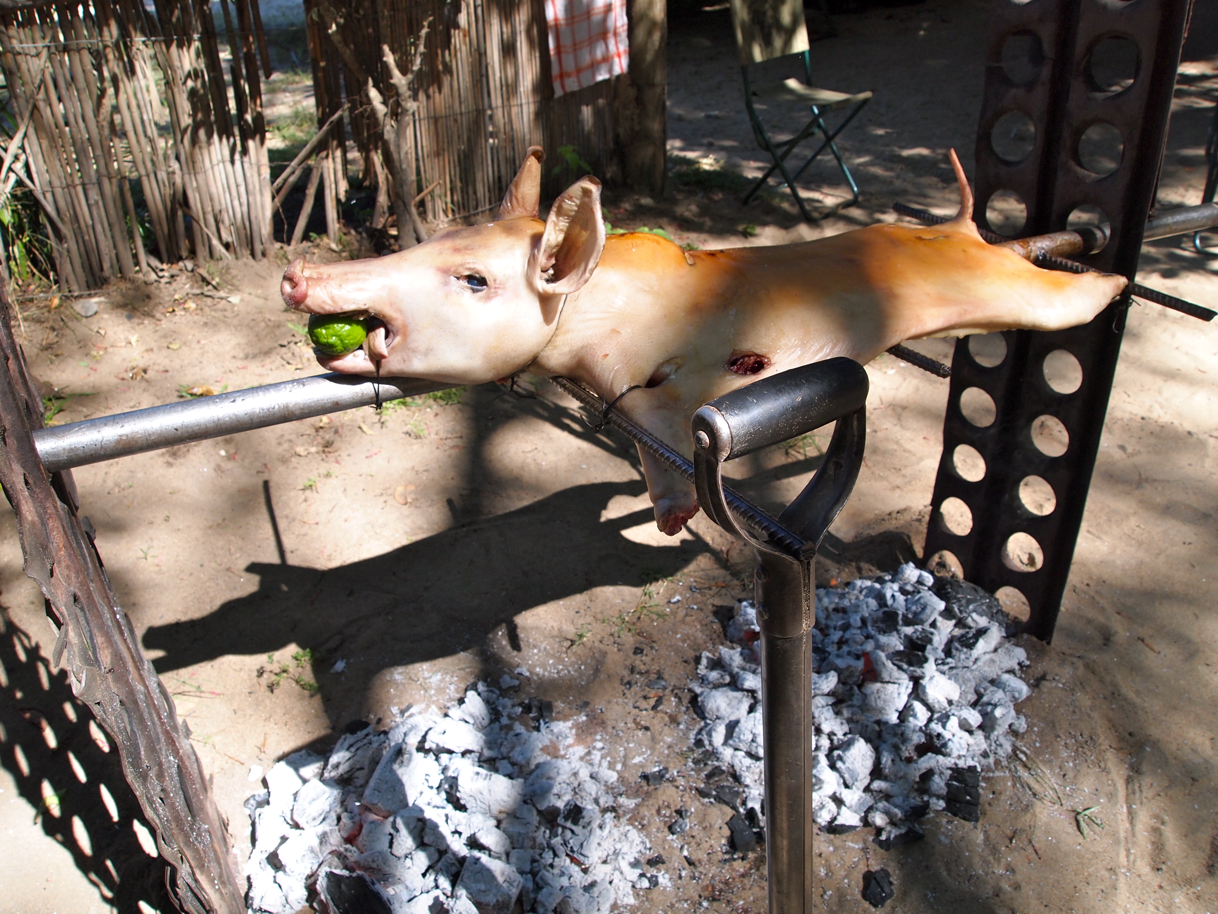 Michael drew my name and dressed me as a Fem bot from the Austin Powers movie. They have pictures and I hope they don’t blackmail me with them! We had a Pig Roast and Rum Punch!