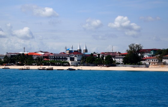 Our Tuk Tuk drivers transported us onto a ferry for a short ride to the main ferry that goes to the island of Zanzibar, located approximately 20 miles off-shore and takes about two hours to reach. We arrived at 11am and this was my first view of the island…