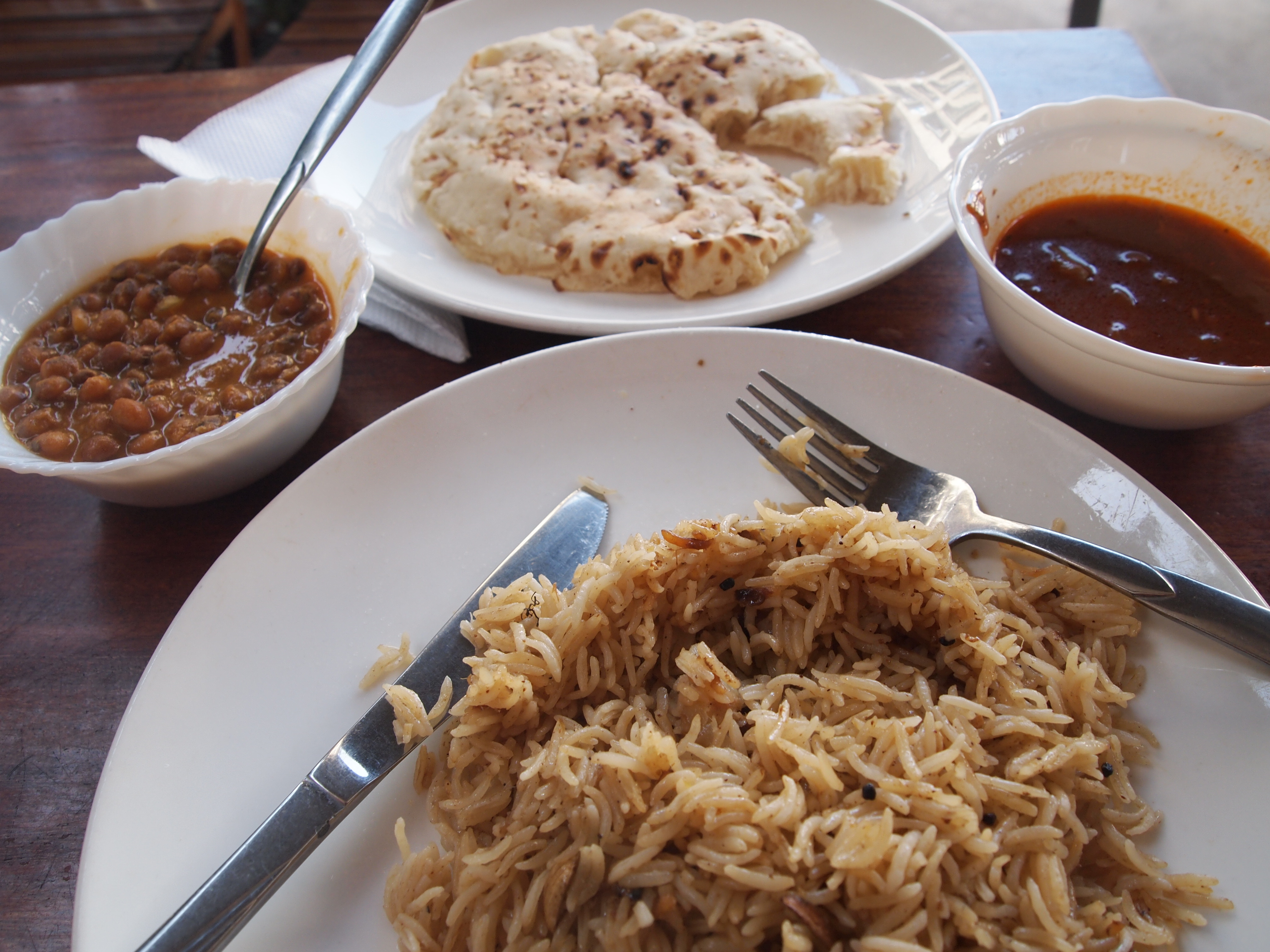 I asked one of the locals where a good place to eat was and he said Lookiman’s (or something like that). He gave me directions, but there aren’t many street signs, so I asked someone else along the way and ultimately found the restaurant. It was definitely a locals’ hangout, so I knew the food would be good. I had lentils, some type of curry, a yummy rice and some naan bread.