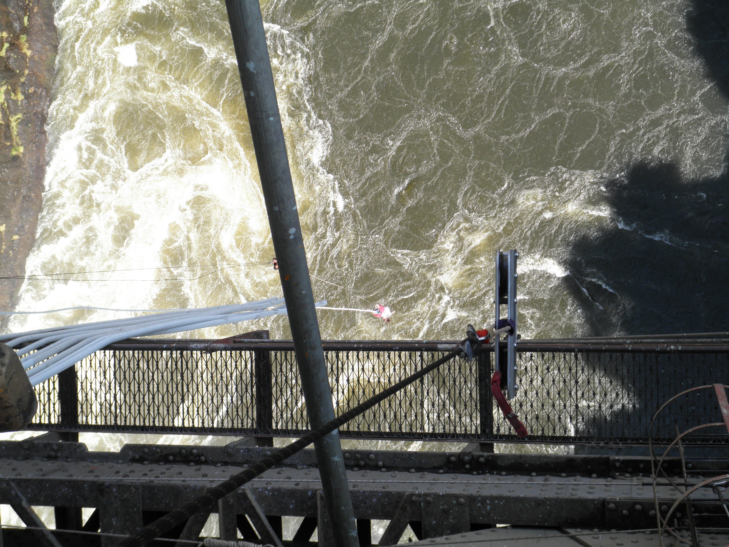 We decided to walk across the bridge rather than take a taxi (no man’s land – since you’re really not in either country) and we stopped to watch a girl bungee jump. This was the bungee jump that broke a while back and a girl broke her collar-bone, but survived!