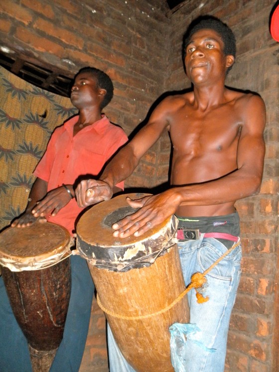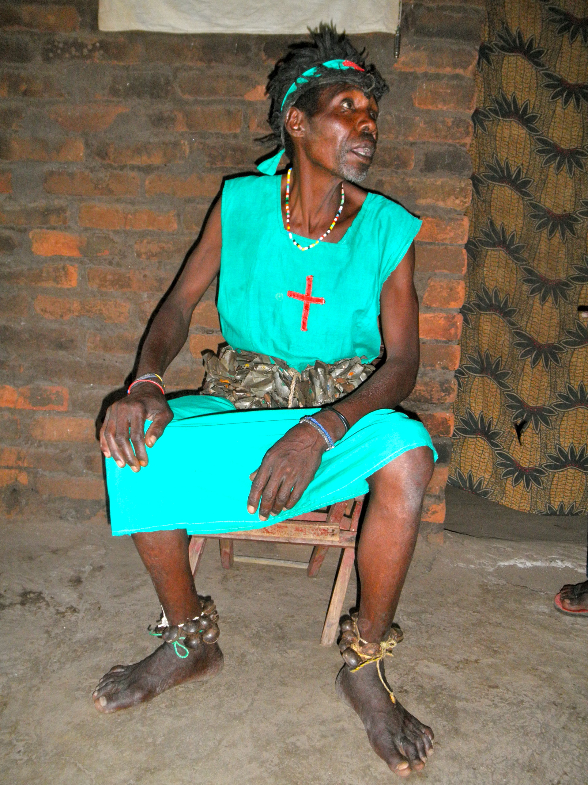 The Witch Doctor began a heated verbal exchange with the drummer on the right and I asked the translator what they were saying. He said the drummer was smoking pot (a joint) and the Witch Doctor told him to stop it. The drummers began drumming and the Witch Doctor began dancing. He had Peter dance with him and then it was my turn. He had a whistle that he blew while he danced.