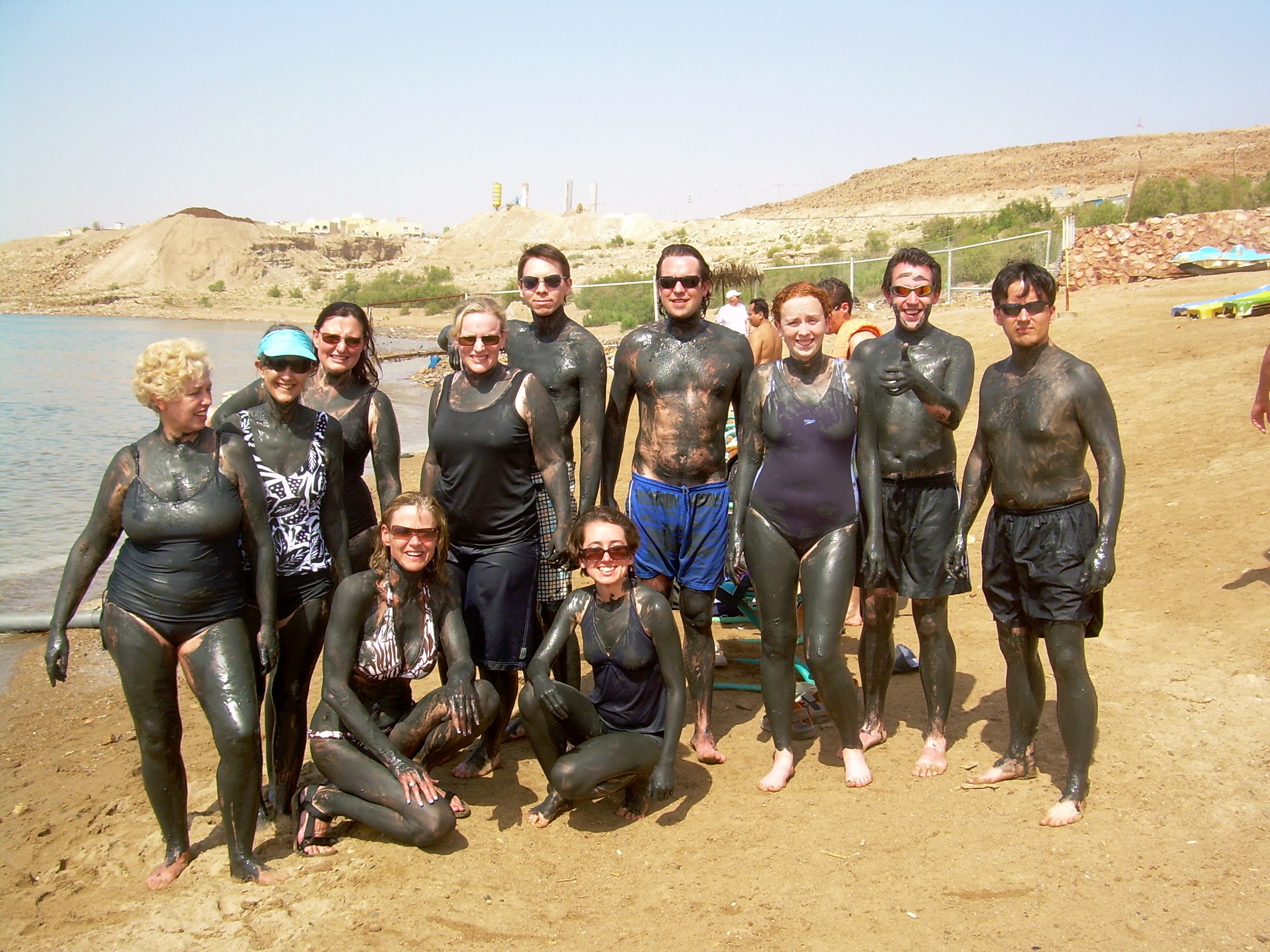 Here is a group shot of us at the “Dead Sea“…the mud from the sea detoxifies your skin and makes it baby soft! And you really do float in the Dead Sea!