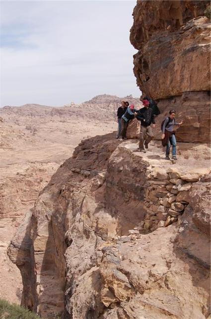 A fellow traveler took this photo of me carefully crossing a very narrow ledge while hiking in Petra…whew!