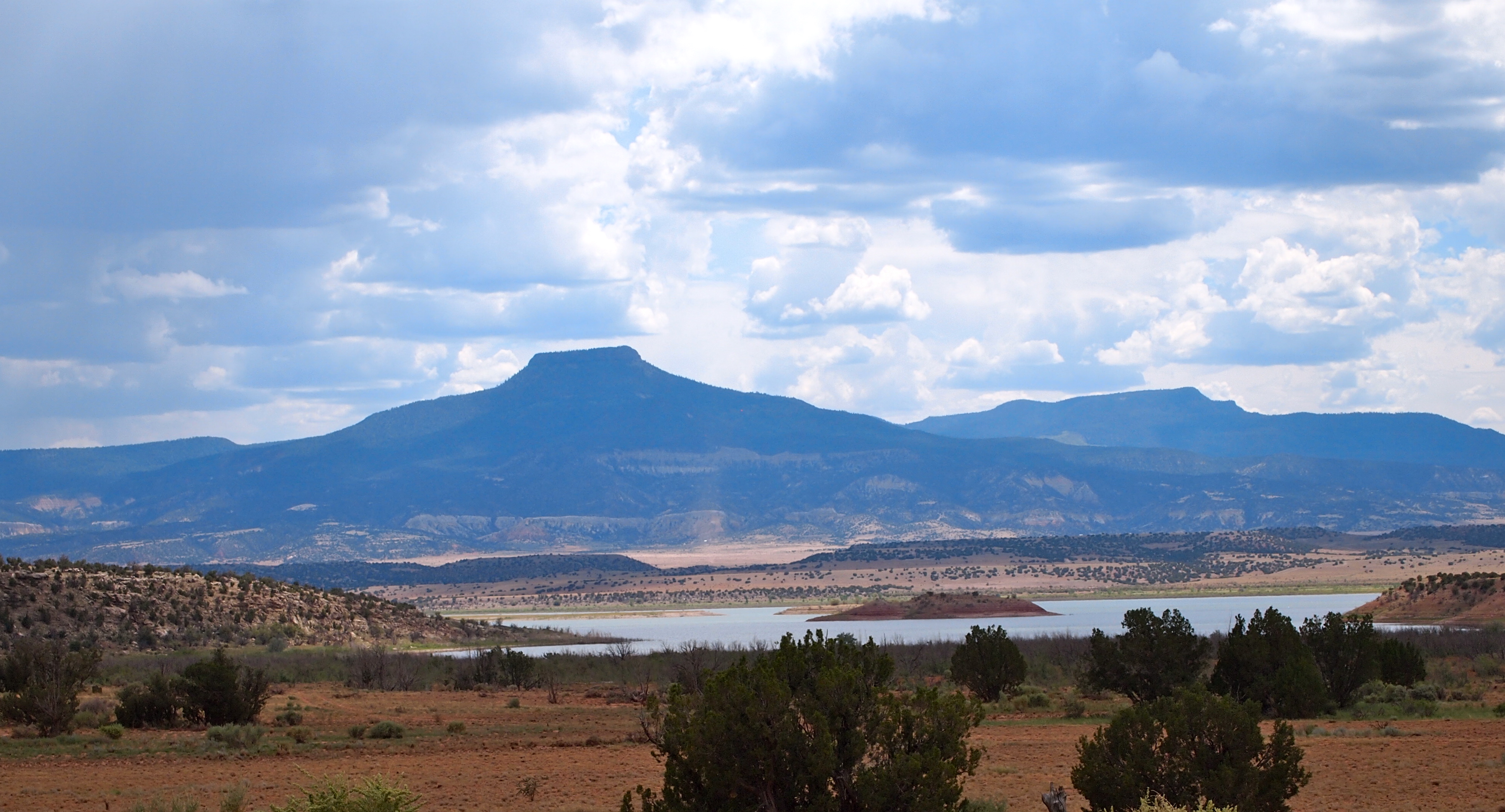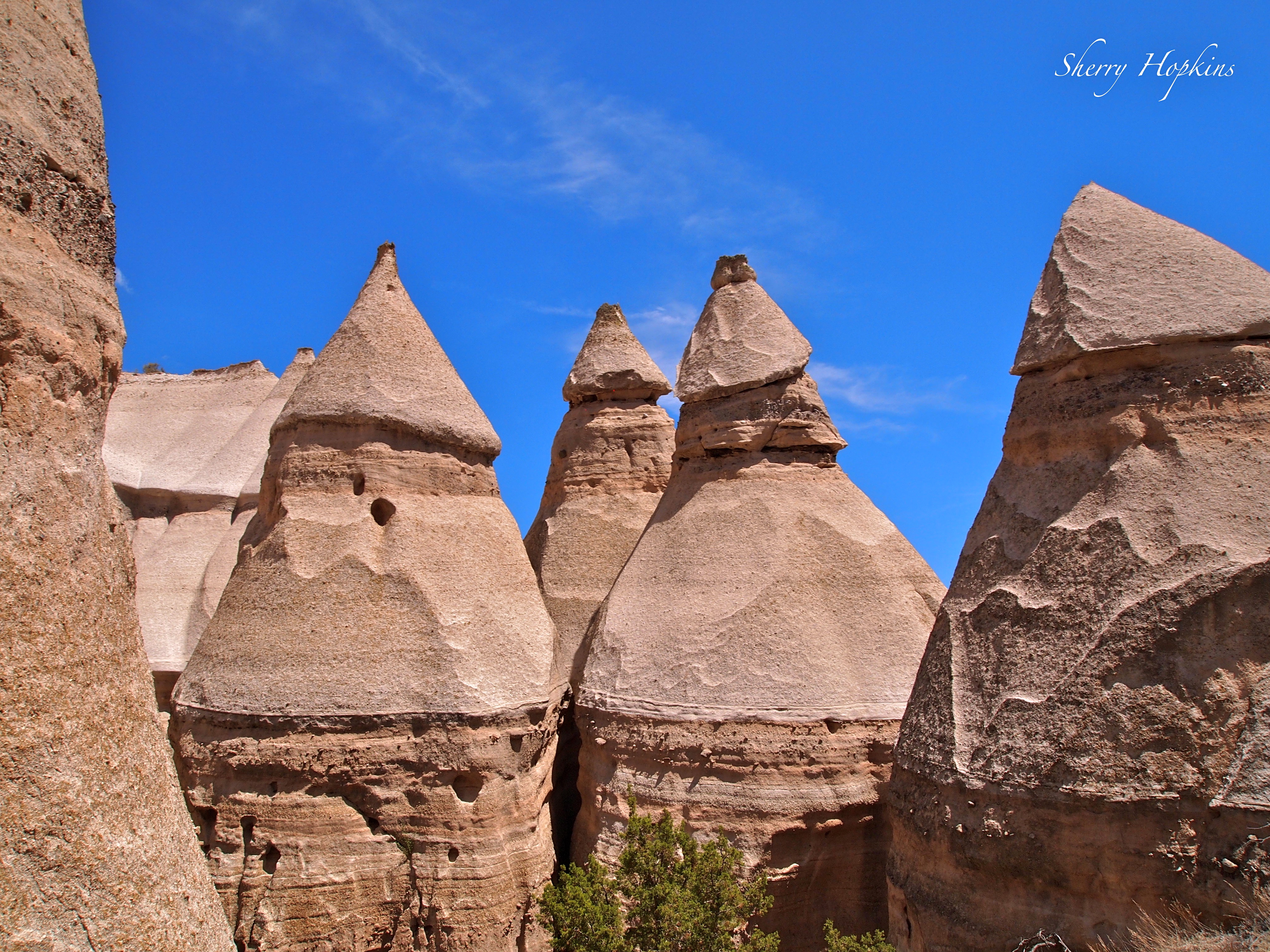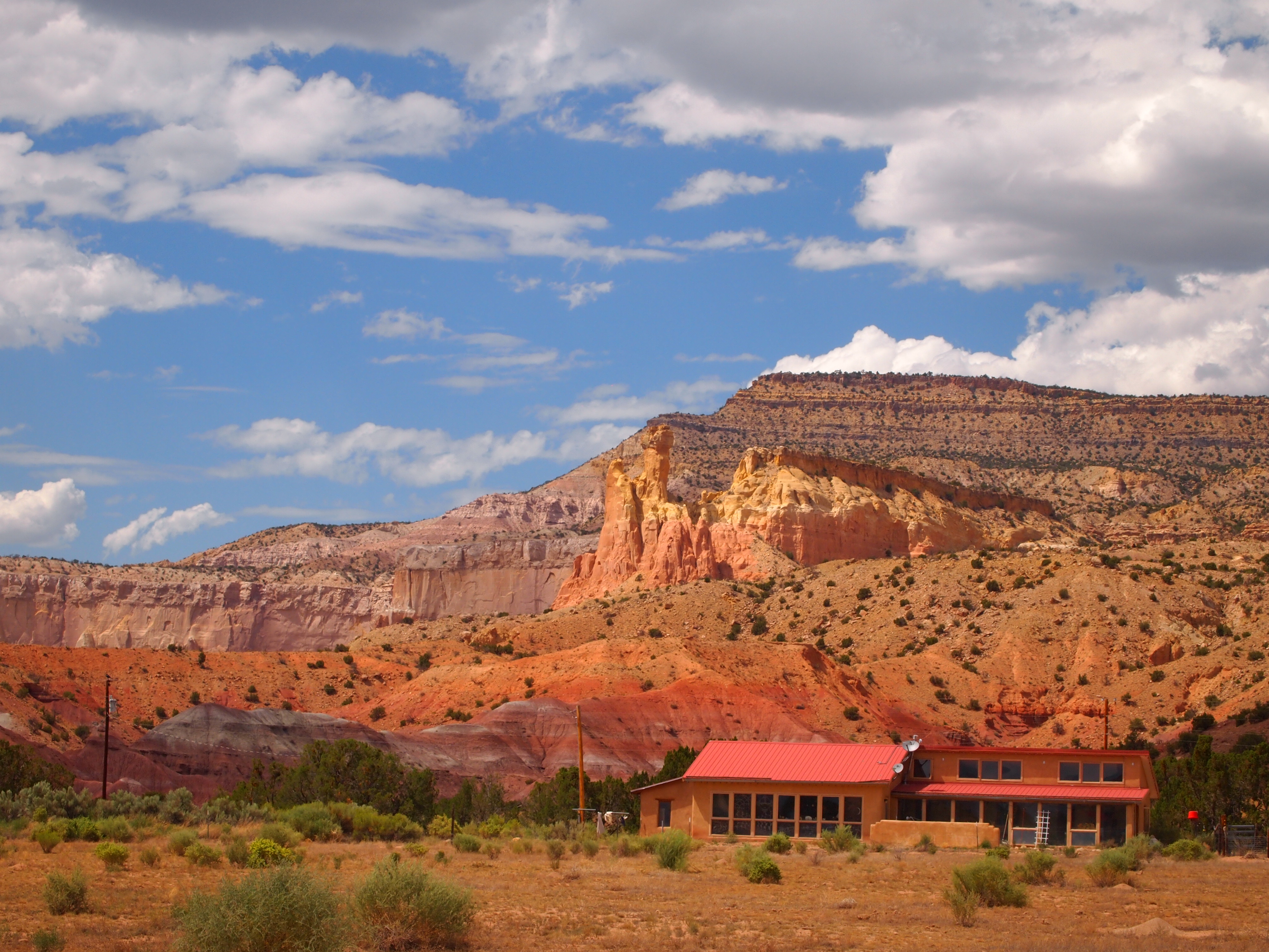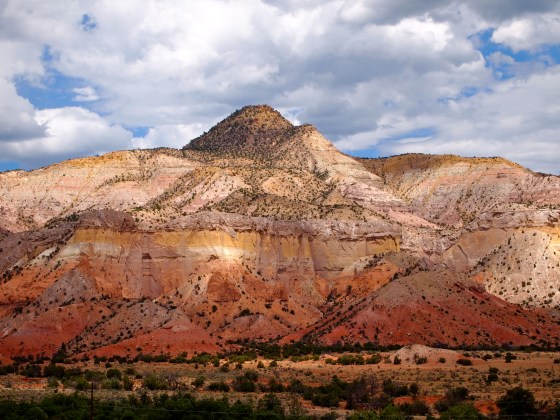 Today was a big day! First, we drove 1 1/2 hrs. North to Abiquiu to a “real” cowboy’s land to horseback ride! His name is Fred Espinola…and I learned more on this 4 hour ride than I’ve ever learned. Having rode in Spain, Costa Rica, Texas, Indiana and Hawaii…not to mention a variety of places in Ohio…I discovered why horses usually gave me a difficult time. They want you to show them who’s boss…(kind of like men). I fell off of a horse in Spain because he wanted to eat grass on the side of a cliff and I let him. A horse laid down with me on top of him (of course I had to jump off quickly) in Texas. On the Loveland Bike Trail in Cincinnati, a horse tried to buck me off of him. They used to love to scrape my legs against trees and fences. At least I’ve followed the advice of getting back on a horse if you fall off!
