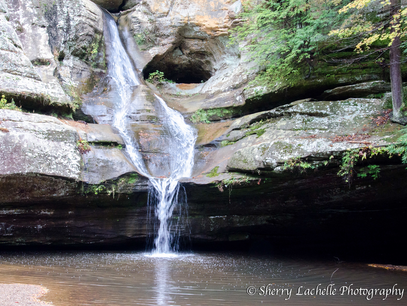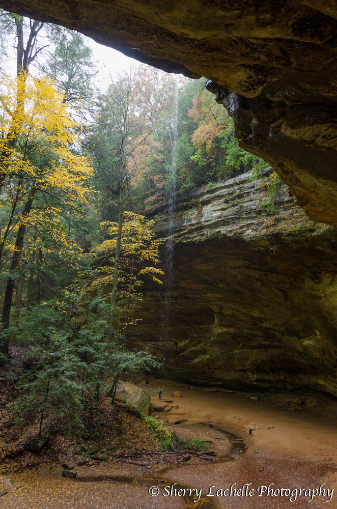 The weather forecast for Day two of our Hocking Hills hiking adventure predicted rain late in the day, so unlike the previous day, we left our rain coats, umbrellas, and waterproof camera bags back at the cabin, because we started out early. Mistake! While taking in the amazing scenery at Ash Cave it began to pour rain. Fortunately for me, I was lagging behind taking photographs, under the shelter of Ash Cave, while my girlfriends were caught in the deluge. Not a bad place to get stuck for 10 minutes!