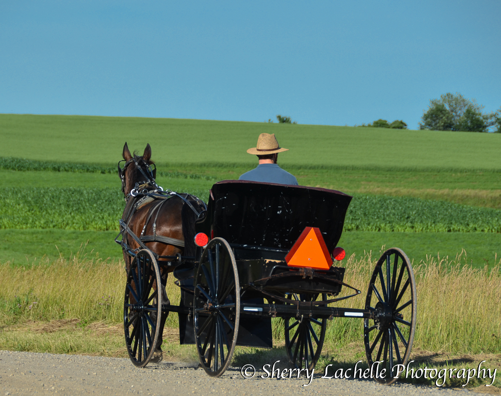 Everywhere I looked, well-tended farms sat on hillsides or in the valleys surrounded by green and blue. The only sound within these peaceful communities was the clip clop of the horses’ hooves making contact with the road as they transported the Amish to and fro…