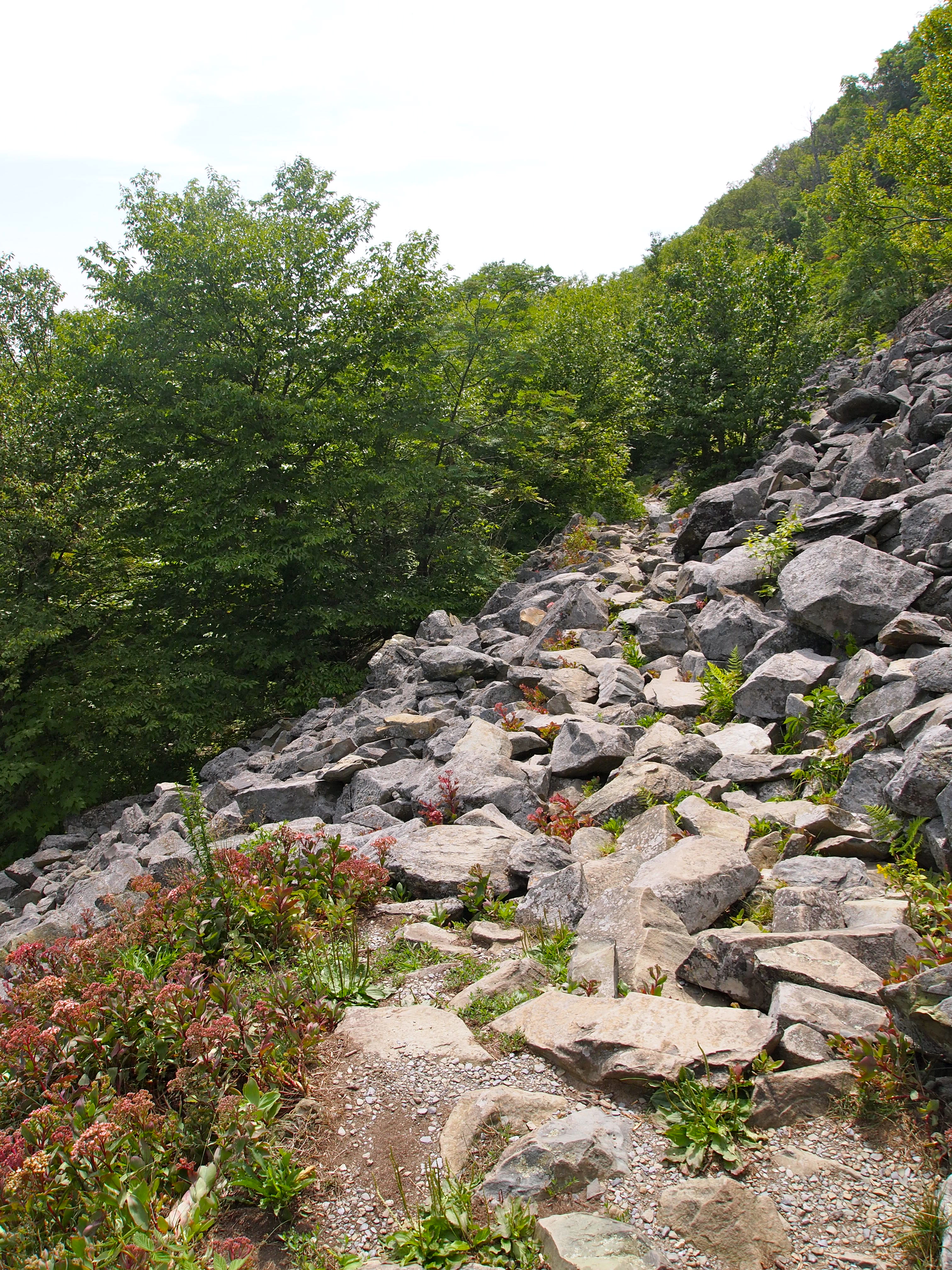 At this section, we had to make our way across the rocks that had slid down the hill.