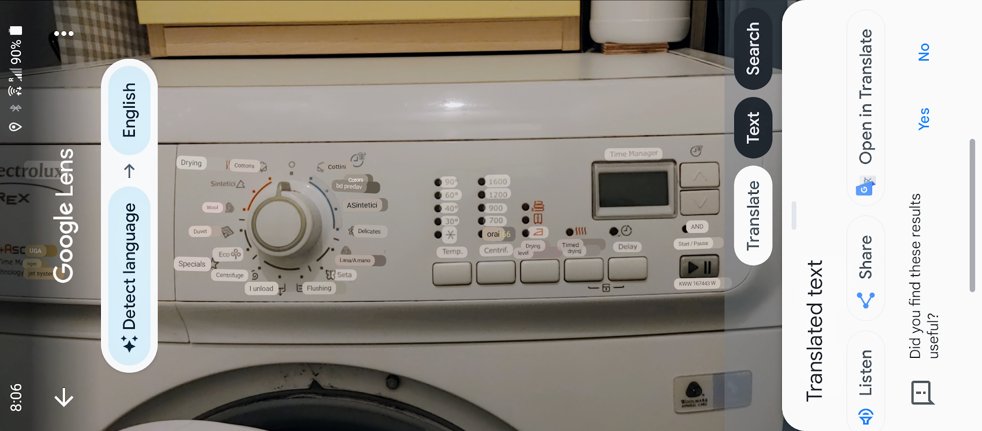 Some of the apps I had on my phone: Rail Planner (train travel was made much easier with this), DB Navigator (great for knowing ahead of time which train platform), SBB Mobile (Switzerland) (for platforms), Free Now Taxi service (for Italy and France), Rome2Rio, Google Lens (which was already on my phone – came in handy for translating menus, instructions, etc.) An example is shown below of before and after…