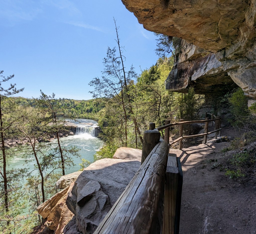 One of the hikes is called Eagle Falls. It follows along the shoreline of Cumberland River with a beautiful view of Cumberland Falls on the way to Eagle Falls. I decided to dip my feet in the ice cold water, it was very refreshing.