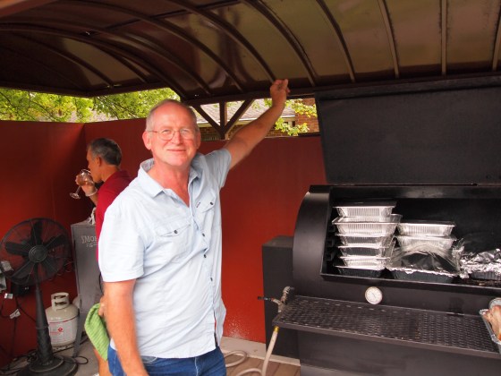 We rushed home, changed clothes and left for our next adventure…Bob’s Pig Roast. It was in honor of his deceased wife who had died from cancer. Everyone donated $10 to the American Cancer Society…so $2700 was collected!